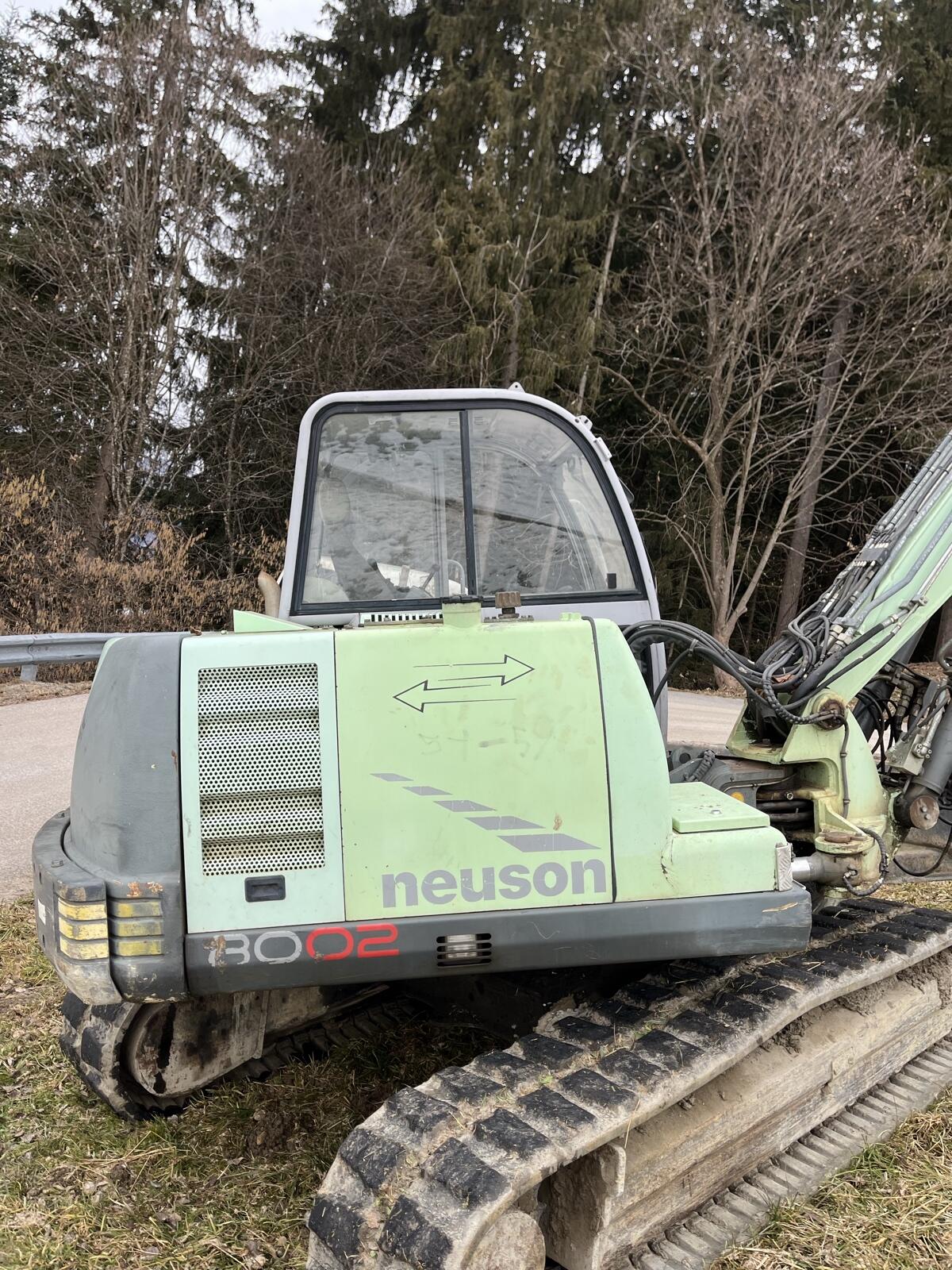Gebrauchter Neuson 8002 zu verkaufen. Kopfdichtung defekt. Bolzen nur leichtes Spiel, Hydraulikpumpe und Laufwerk sind in Ordnung. Zentralschmierung sind zwei Schläuche kaputt.