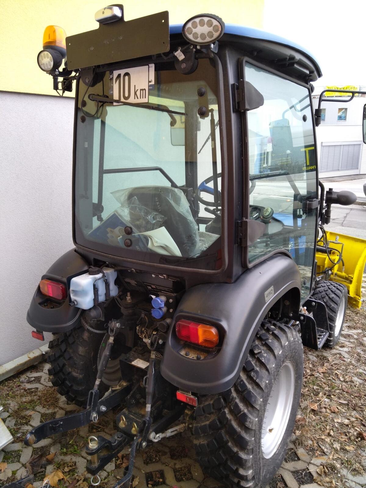 Solis 26 HST, mit Schneeschild und Zapfwelle.
