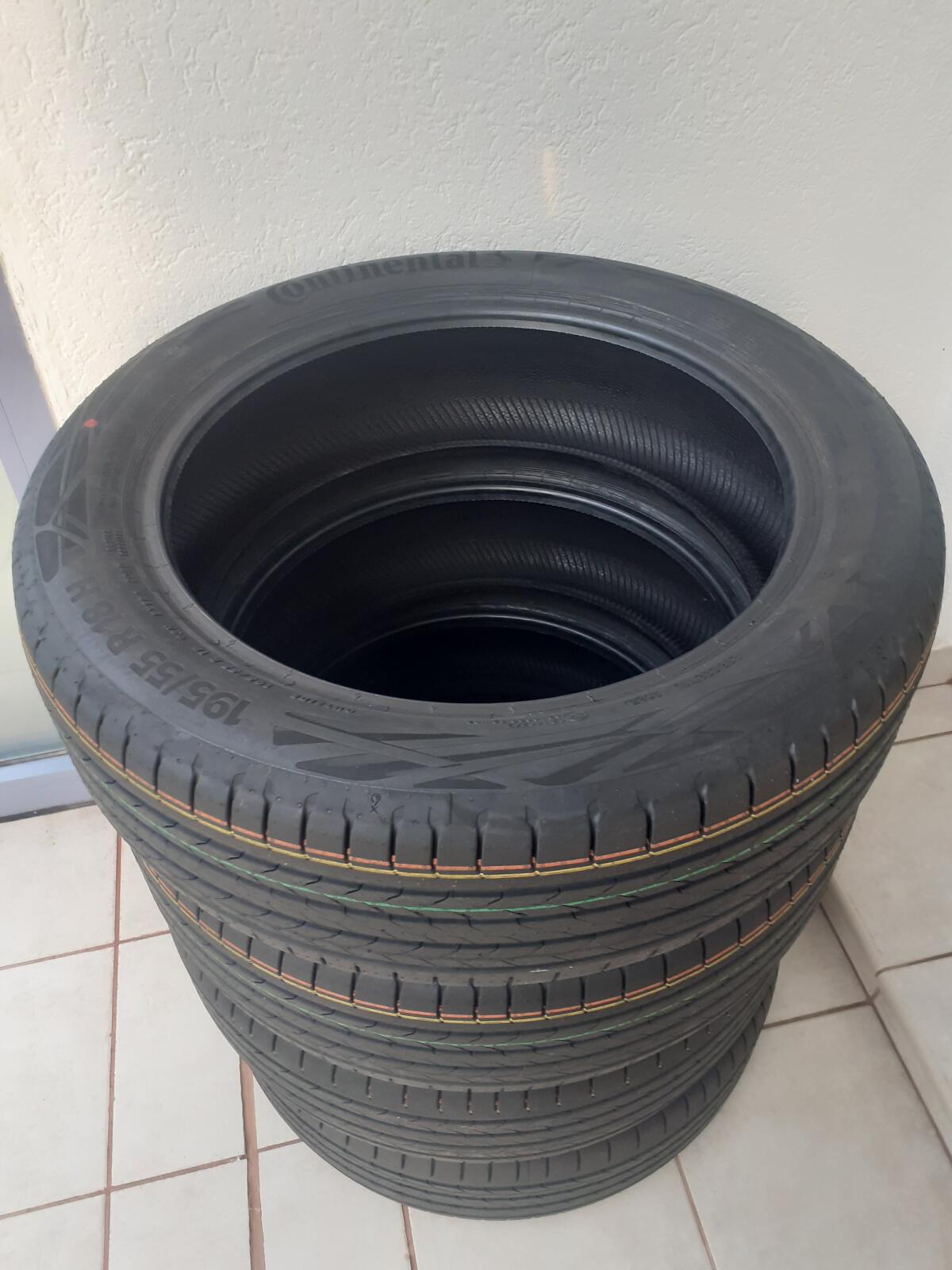 4 Stk., neue Sommerreifen Continental EcoContact 6Q Dimension 195/55 R18 H (waren auf Neuwagen), zum halben Originalpreis, nur Abholung.