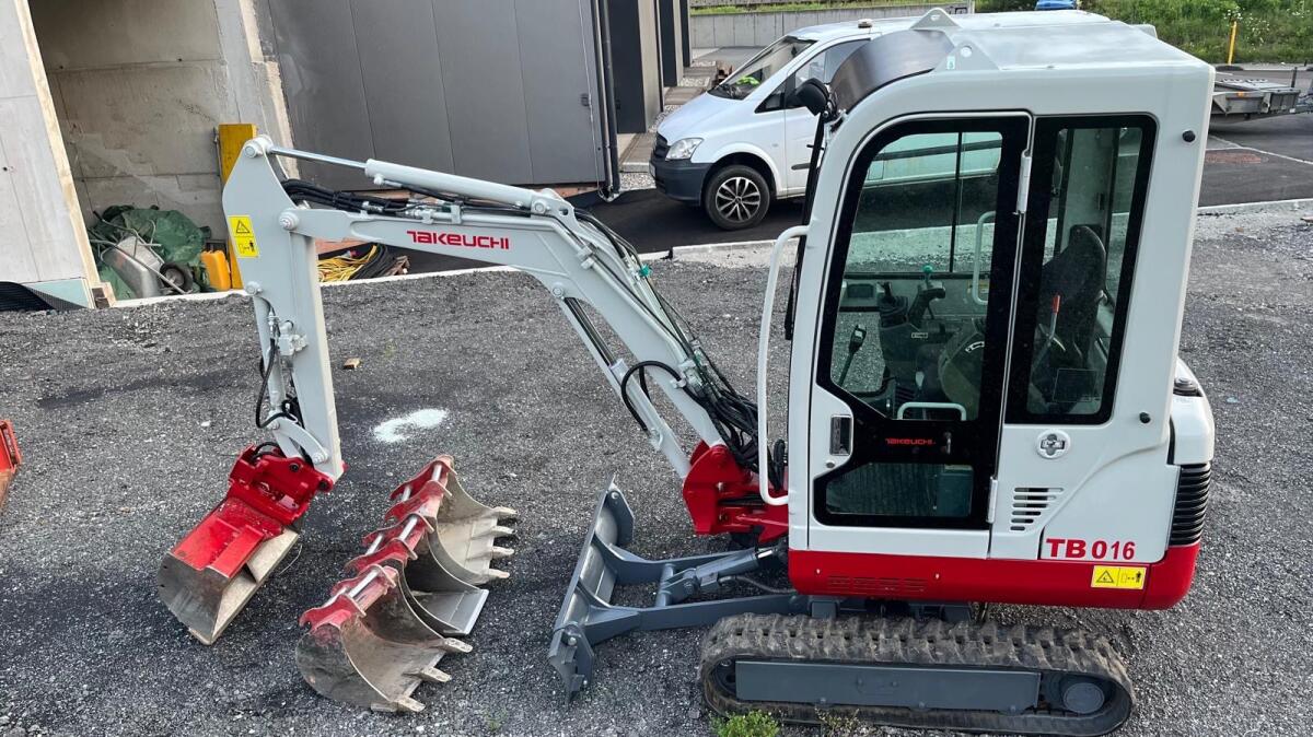 Verkauft wird ein TB016 inkl. hydr. Schnellwechsler und Powertilt, drei Steuerkreise, Löffel: 30, 40, 60, 850 mm, Service komplett inkl. Hydrauliköl, LED-Beleuchtung, einige Schläuche erneuert, Spurverbreiterung, Standort Innsbruck Umgebung.