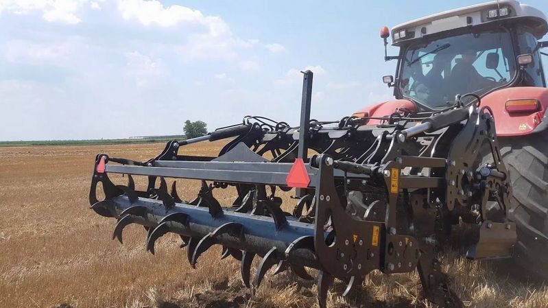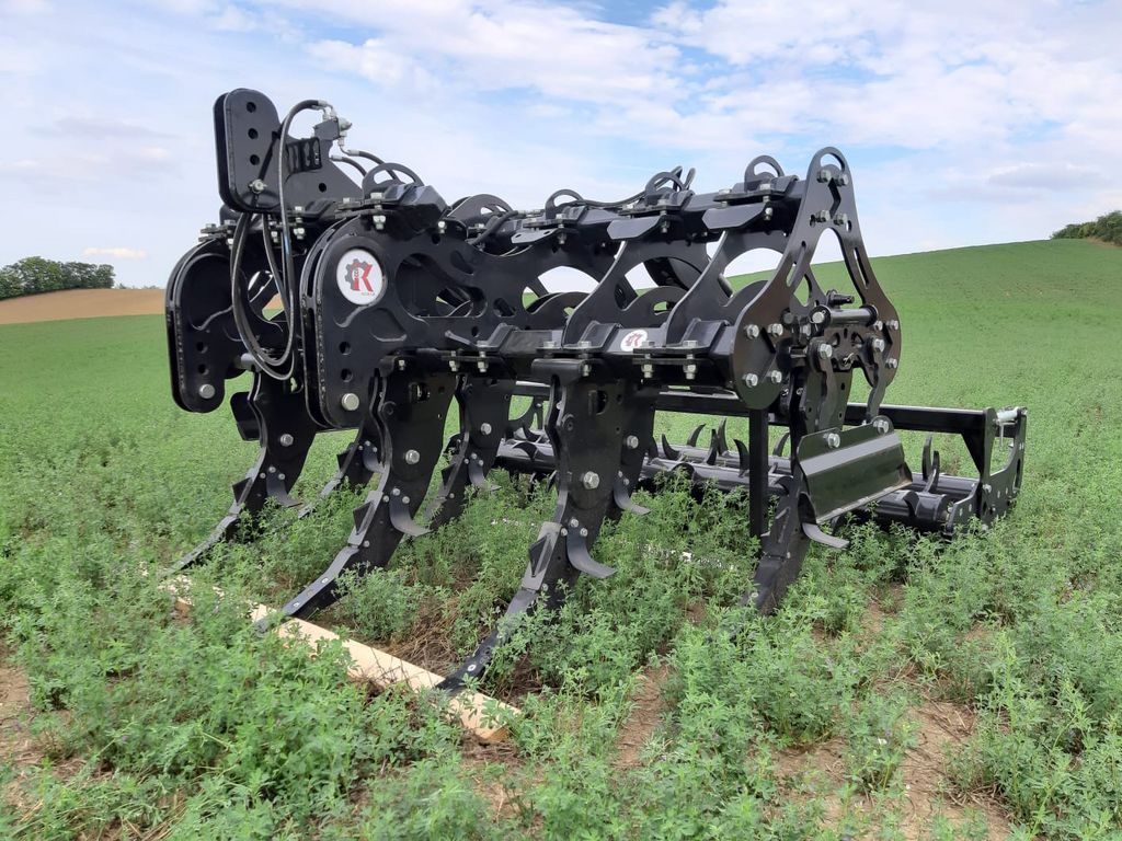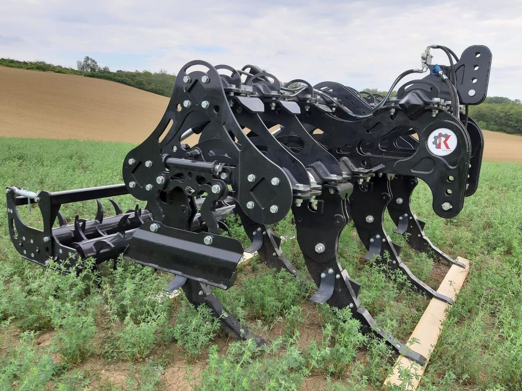 Tiefenlockerer mit sehr massiver Bauweise. Doppelstachelwalze zur Zerkleinerung der Erde. Randbleche sind klappbar. Inkl. hydr. Tiefenverstellung. Skala, um zu sehen, wie tief das Gerät justiert ist. Arbeitstiefe bis 55 cm möglich. Überlastsicherung per Scherschraube, um Schaden am Rahmen zu vermeiden. Preis ohne MwSt. und bezieht sich auf Modell 5/2,5 mit 5 Zinken. Auch mit 7 Zinken verfügbar. Bei uns zu besichtigen und prompt verfügbar.