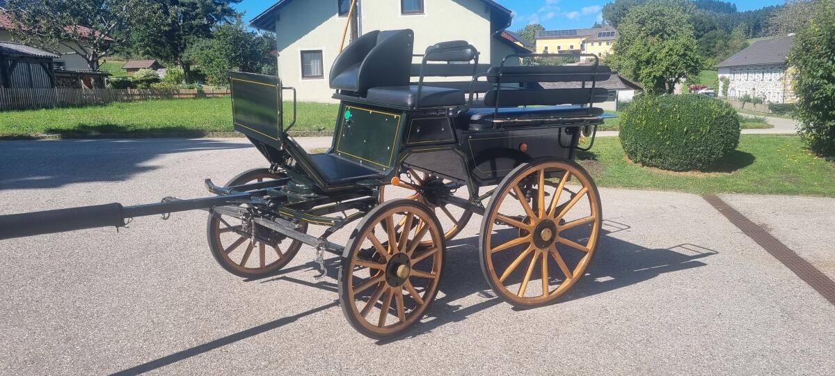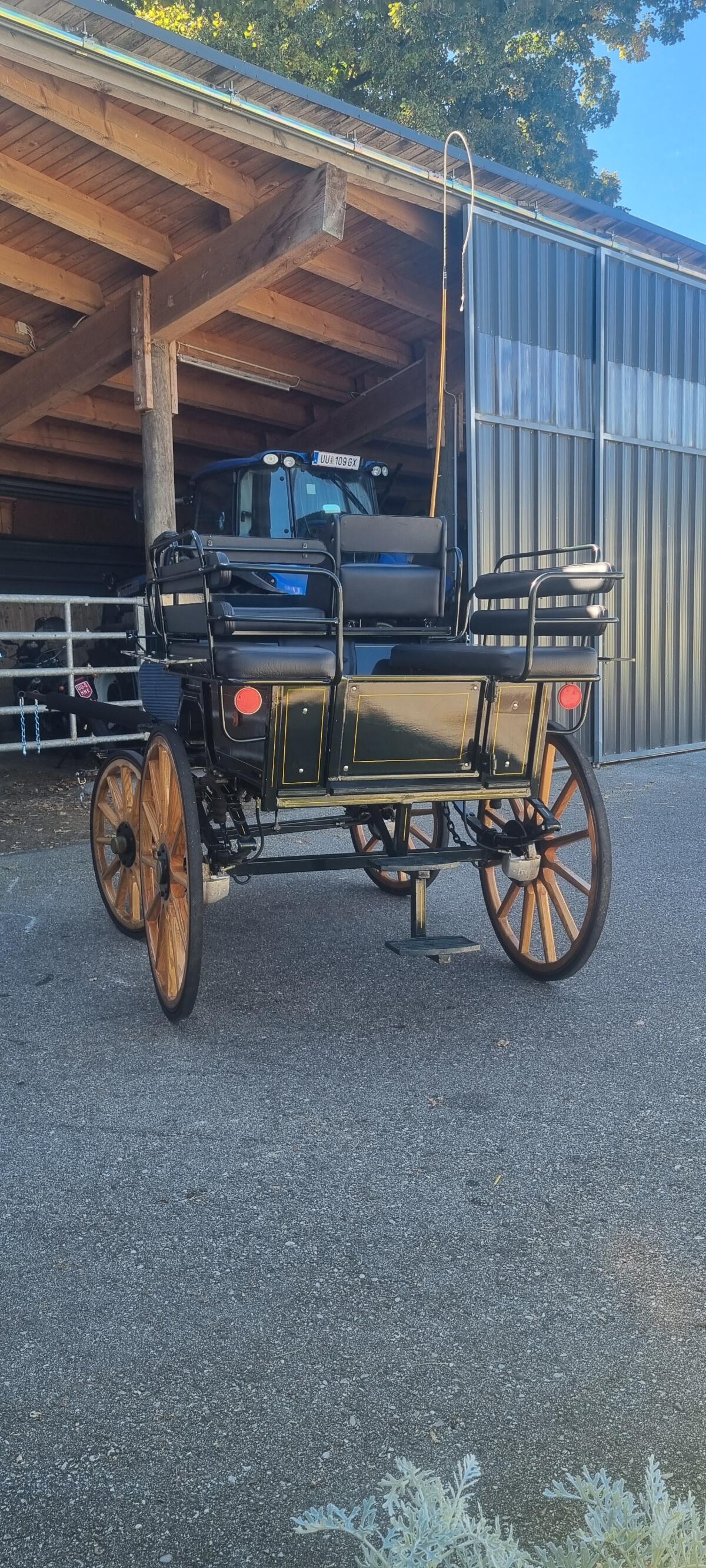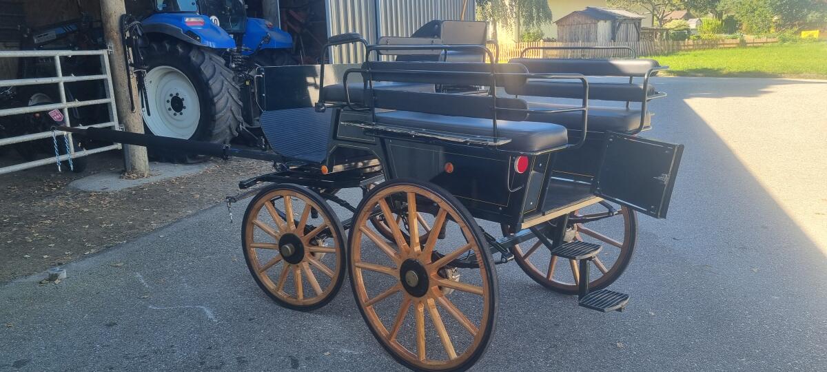 Verkaufen wegen Überzahl unsere sehr gepflegte Kutsche. Mit den Holzspeichen ist sie ein echter Hingucker. Wird nach wie vor gefahren und daher in einem Top-Zustand. Hinten und vorne Scheibenbremsen. Eher für Pferd ab einem Stockmaß ab 150 cm.