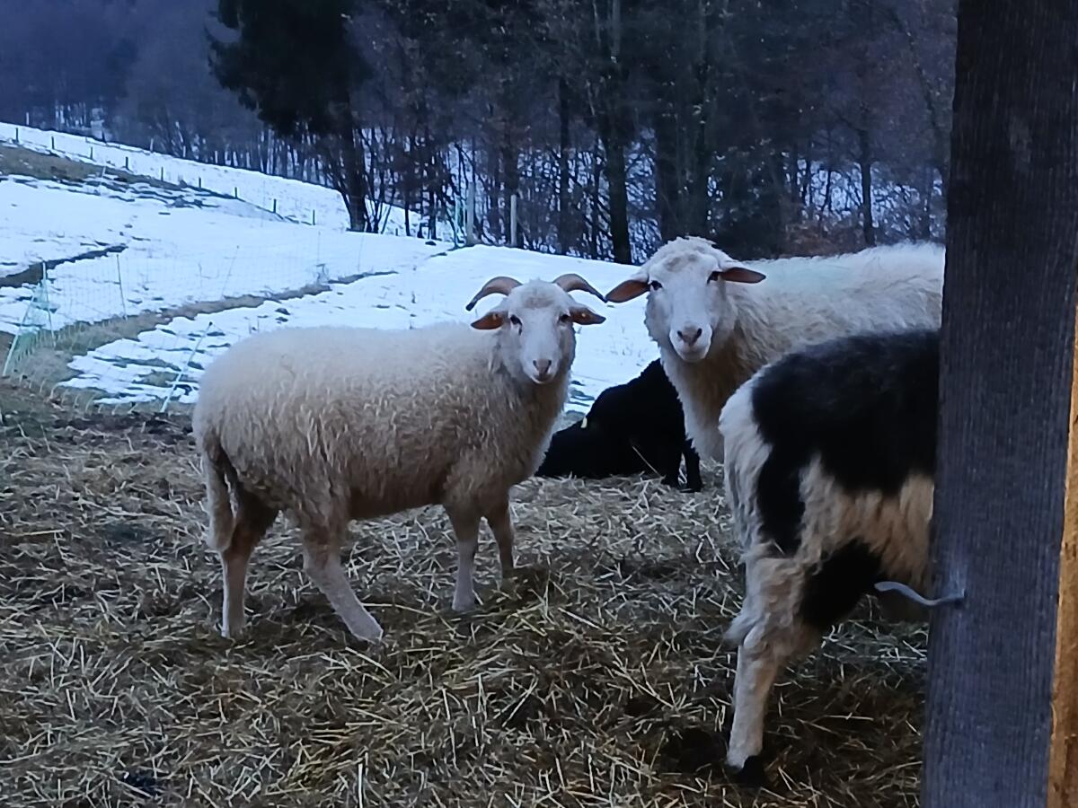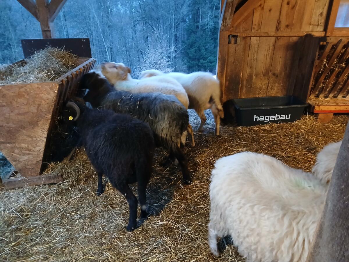 Waldschafherde wegen Betriebsaufgabe zu verkaufen. Herdebuchbetrieb. Bock (2,5 Jahre alt), 8 Schafe (1-2,5 Jahre alt) mit Lämmern oder tragend. Weiters 7 Altschafe mit Lämmern oder tragend.