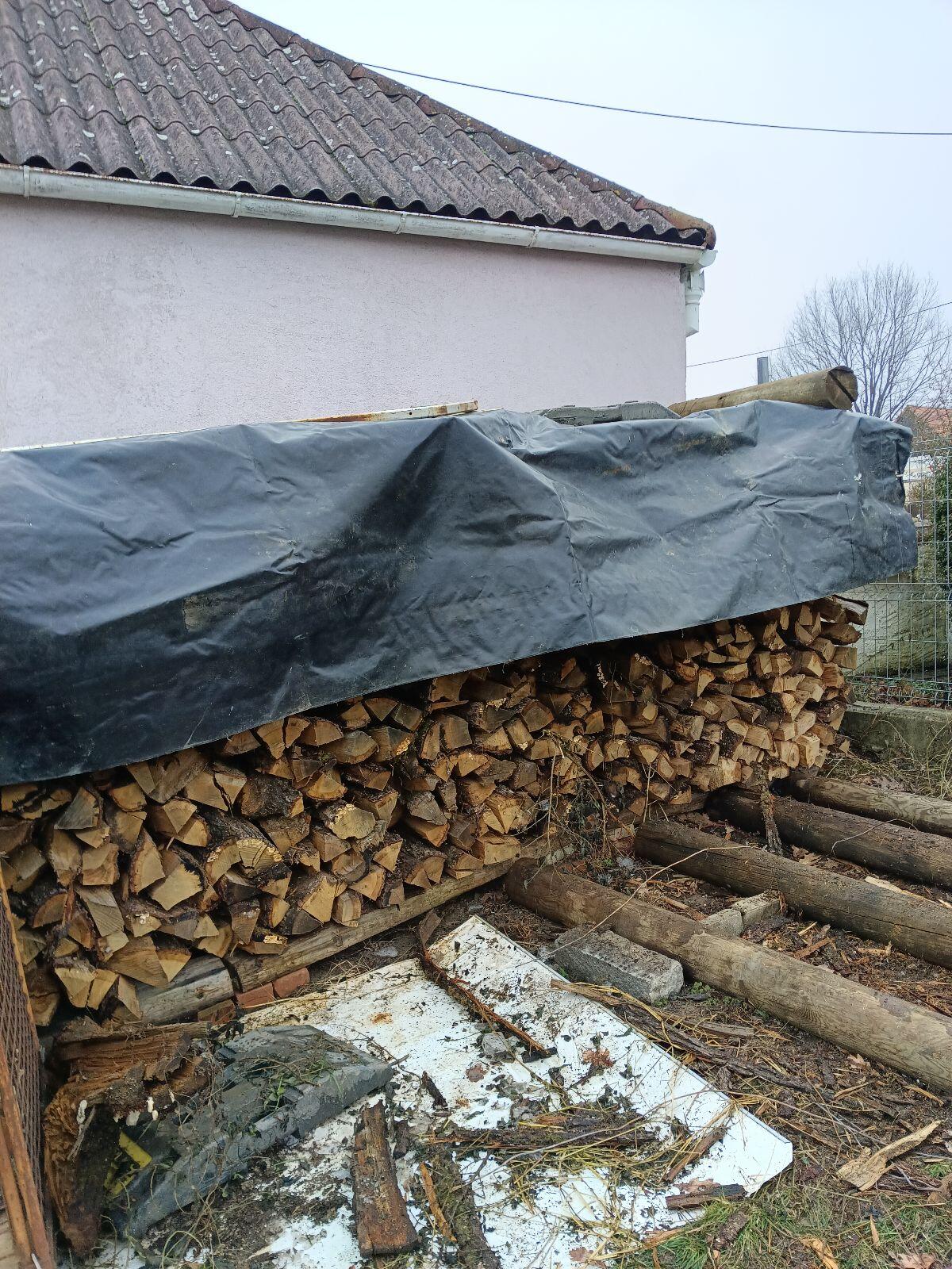 Angeboten werden 20 m Brennholz, Kiefer und Eiche. Getrennte Stapel. Drevo Rezivo