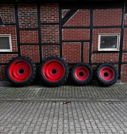 Biete hier einen Pflegeradsatz von BKT an. Hinten: 320/85 R38 mit gut 3 cm Profil, vorne: 320/85 R24 mit gut 2, 5 cm Profil. Reifen sind von 2014 und haben als Pflege