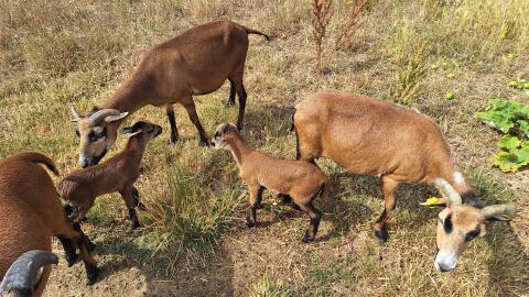 Unsere 8 Kamerunschafe suchen, einzeln oder gemeinsam, einen neuen Platz. Es handelt sich hierbei um 1 Hammel, 7 Auen. Es sind 3 ältere Auen mit ihren Jungen, die jü
