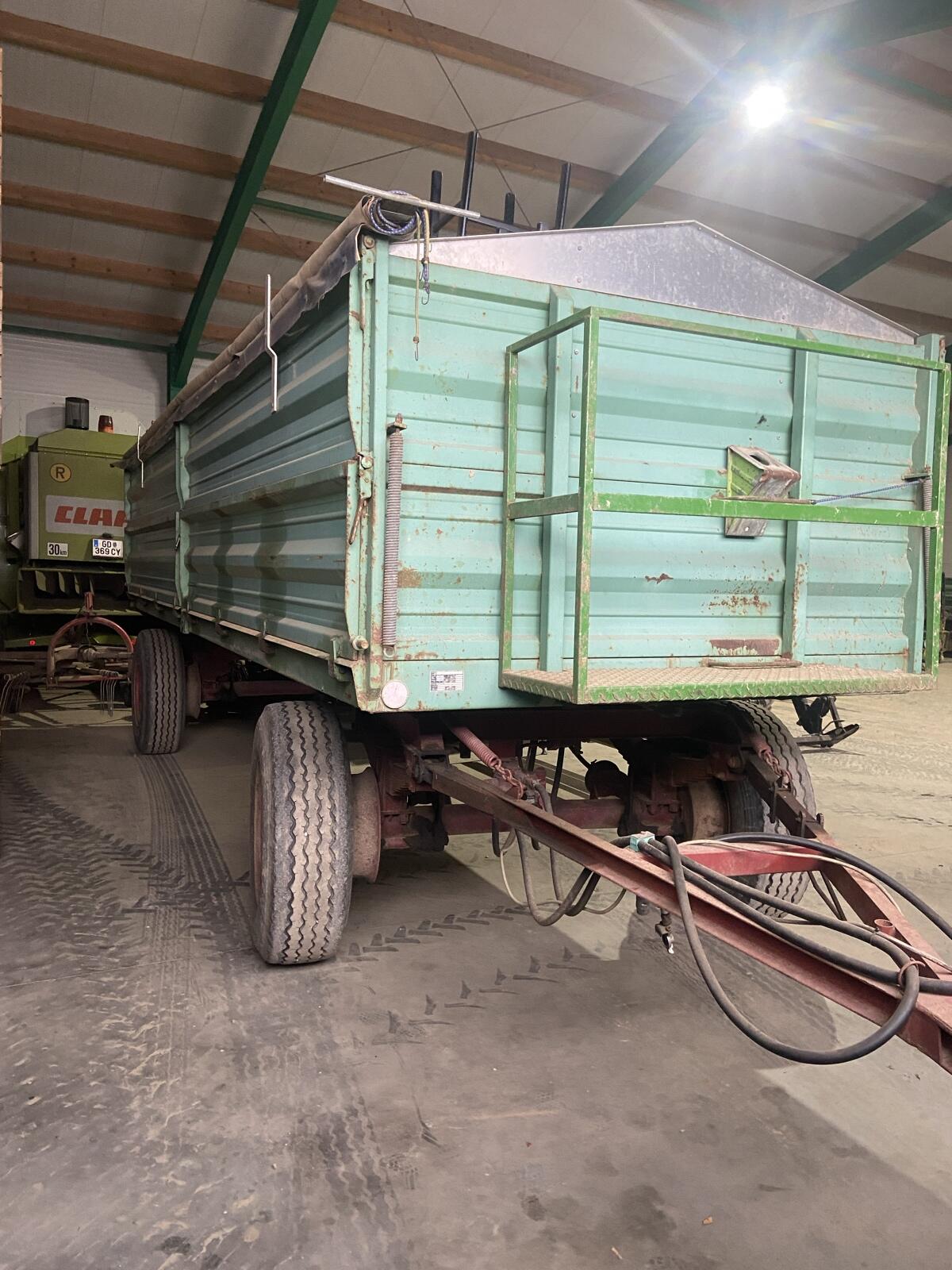 2-Achser-Traktoranhänger mit Feststellbremse zu verkaufen. Plateau wurde mit Siebdruckplatten verstärkt. Doppelte Bordwände seitlich vorhanden. Kein Kipper! Wie auf