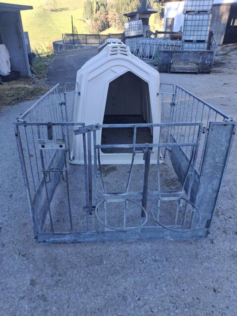 Kälberiglu mit Auslauf, Iglu: Breite 120, Länge 220, Auslauf: Breite 130, Länge 140, guter Zustand. 8 Stk. vorhanden. Stroje na chov hospodárskych zvierat Maštalská