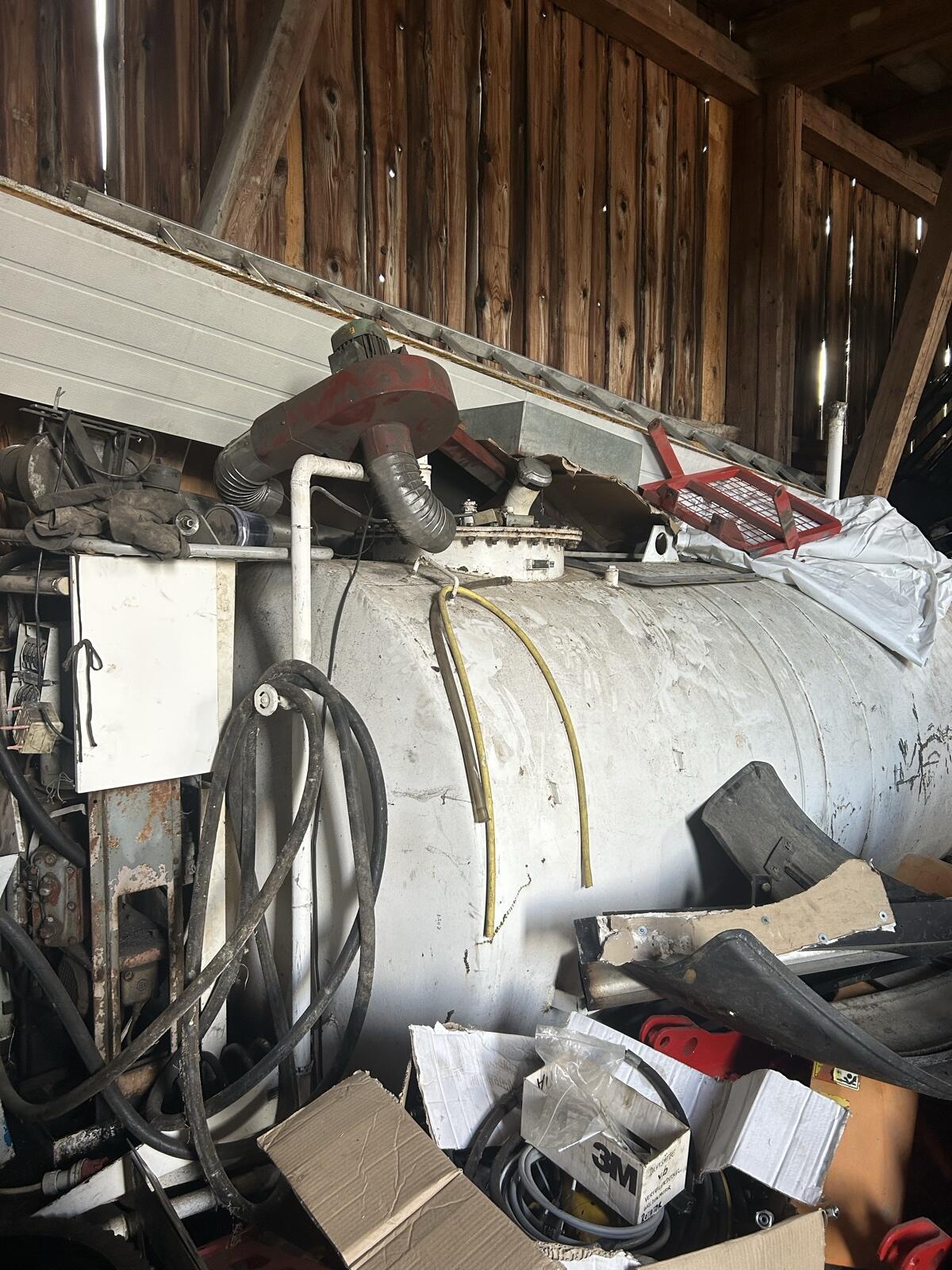 Verkaufe gebrauchten Gastank mit den Maßen Länge 4, 35 m, Breite 1, 25 m, Höhe 1, 45 m. Ausgebrannt und Stickstoff gefüllt. Stroje na chov hospodárskych zvierat Kontajn