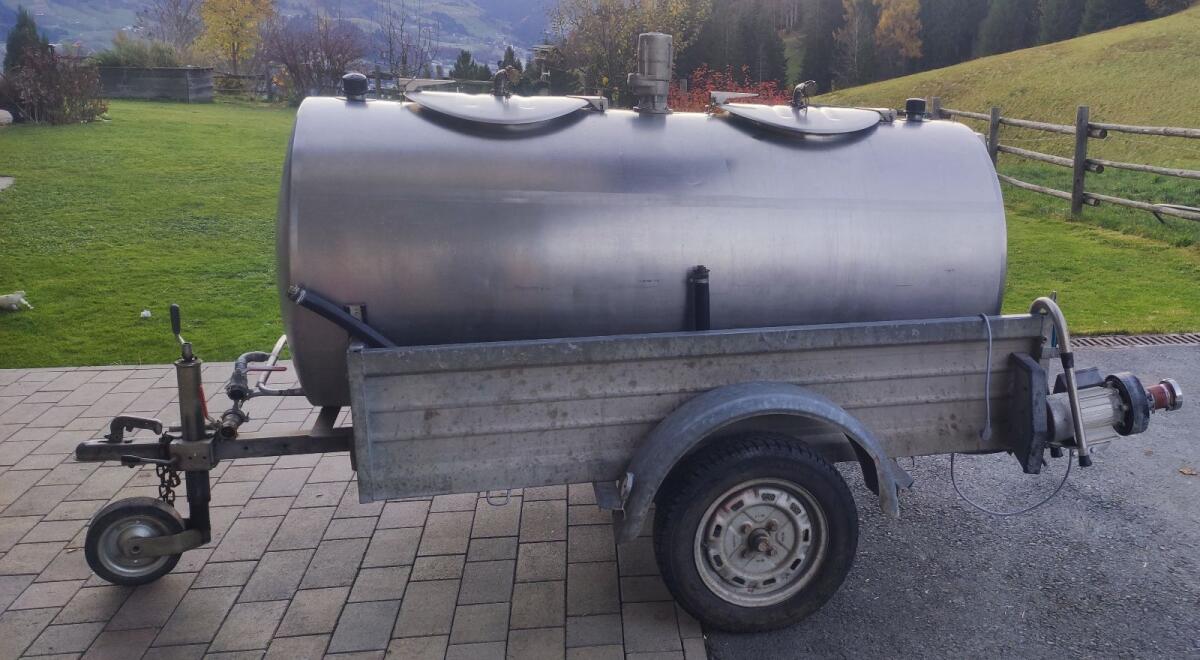 Gebrauchter Milchtank 950 l, mit Rührwerk, fertig auf Anhänger montiert. Inkl. halbautomatischer Reinigung. Voll funktionsfähig und sauber. Sofort verfügbar. Wurde m
