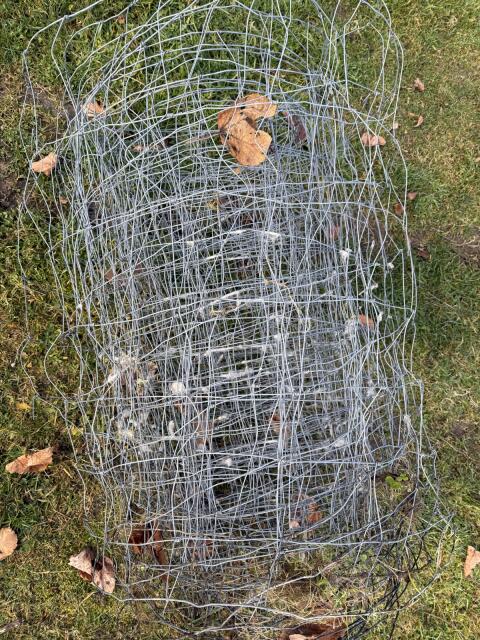 Verkaufe gebrauchtes Weidezaun-Knotengeflecht mit 1 m Höhe. Das Geflecht ist leicht verbogen, beschädigt (siehe Foto), jedoch insgesamt noch brauchbar, z. B. für Wei