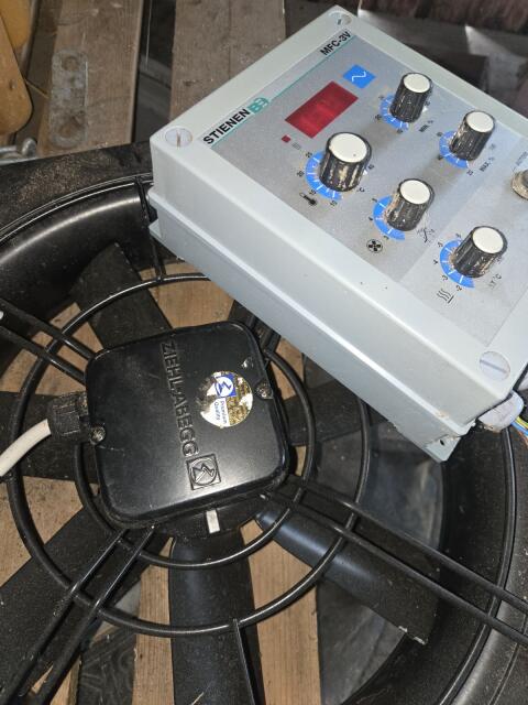 Big Dutchman Lüfter mit Stienen Steuerung für Automatikbetrieb. Der Lüfter hat 40 cm Dm. und max. 0, 23 kW bei 100 %. War nur 2 Jahre in Verwendung. Stroje na chov ho