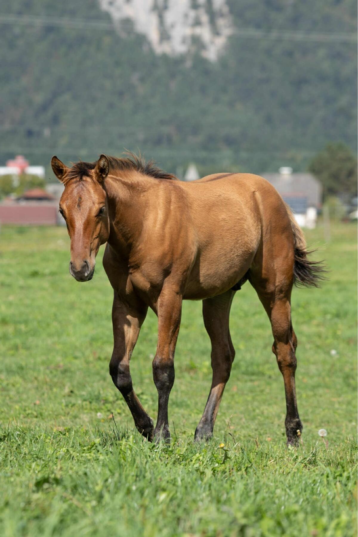„Brandy“ - Quarter Horse Hengstfohlen Custom Gun Smoke x Lovers Magic Girl 5/2025 geboren, Farbe Dun, sucht nach dem Absetzen im Herbst ein neues Zuhause. Er überzeu