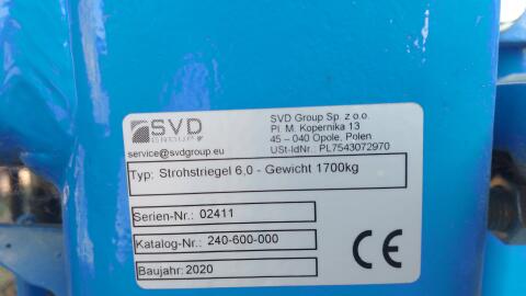 Strohstriegel - Ideal für die Verteilung von Strohmengen nach dem Mähdrusch. Sofort einsatzbereit, 6 m AB, 1.700 kg, Bj. 2020. Stabile Rahmenführung, 2 Grundelemente