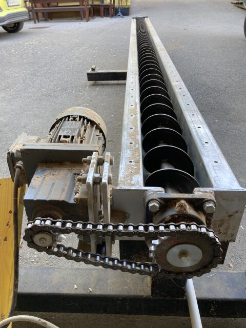 Förderschnecke für Hackschnitzel, Sägespäne oder Getreide, Wellendurchmesser 120 mm, Gesamtlänge 4, 60 m, ohne Untergestell und ohne Räder. Zariadenia potravinárskeho