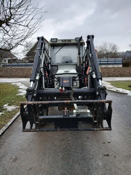 Verkaufe Hauer Frontlader für Steyr 8110. Inkl. Konsole, Leichtgutschaufel 2 m, Schaufeln ca. 1, 3 m, Mistgabel und Palettengabel. Alles hat eine Euroaufnahme. Zylind