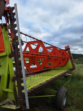 Claas Dominator 98 SL, hydr., in sehr gutem Zustand, regelmäßig gewartet. Bj. 1991. Weizenheader Claas 3, 90 m, Maisheader Oros 5 Reihen, plus ein weiterer in Teilen.