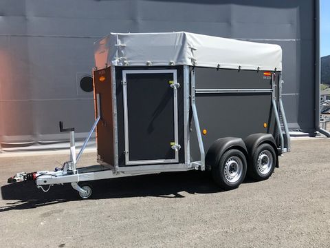 Böckmann Viehtransporter VH 3016/27 - Comfort-Federungs-Fahrgestell (CFF) - Stützrad automatik - Grauer Plywood-Aufbau, 1500mm hoch - Plywood-Boden - Plane u