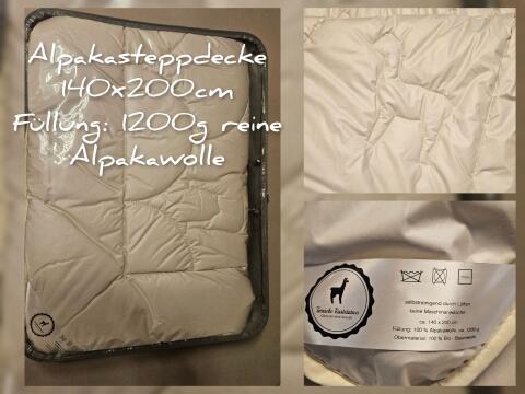 Alpaka Steppdecke 140x200 cm mit 1.200 g Füllung aus 100% Alpakawolle, hergestel