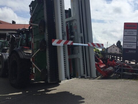 Kuhn GA 8030 2-Kreisel-Schwader mit je 12 Zinkenarme pro Kreisel mit je 4 Doppelzinken, 3D-Pendelaufhängung mit STABILIFT Kreiselverriegelung in ausgehobener Stellun