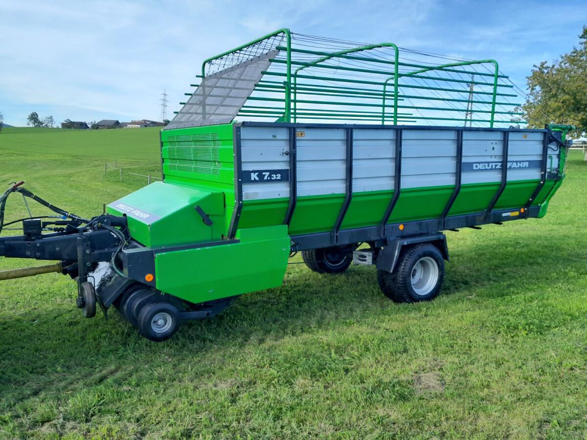 Verkaufe Deutz K7.32, 32 Messer, 4 Schwingen, Kratzbodenantrieb, Heckdeckel, Messer, Knickdeichsel hydr. zu bedienen. Wurde nur Heu gefahren, stand immer im Trockene
