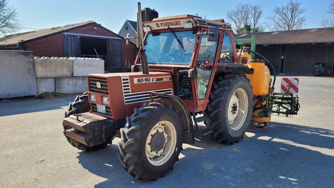 Fiat 80-90 DT Erstzulassung 1984 mit ca. 12.260 Std. Bereifung hinten 420/85 R34 ca. 90% Bereifung vorne 340/85 R24 ca. 95% 2x mech. DW Steuergeräte im Heck 10