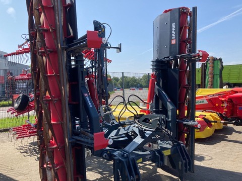 Der Grubber der Marke Sieger, Modell 2024, ist ein stabiler Flügelschargrubber mit verstellbarer Steinsicherung mit doppelter Feder. Er verfügt über 12 Zinken und ei