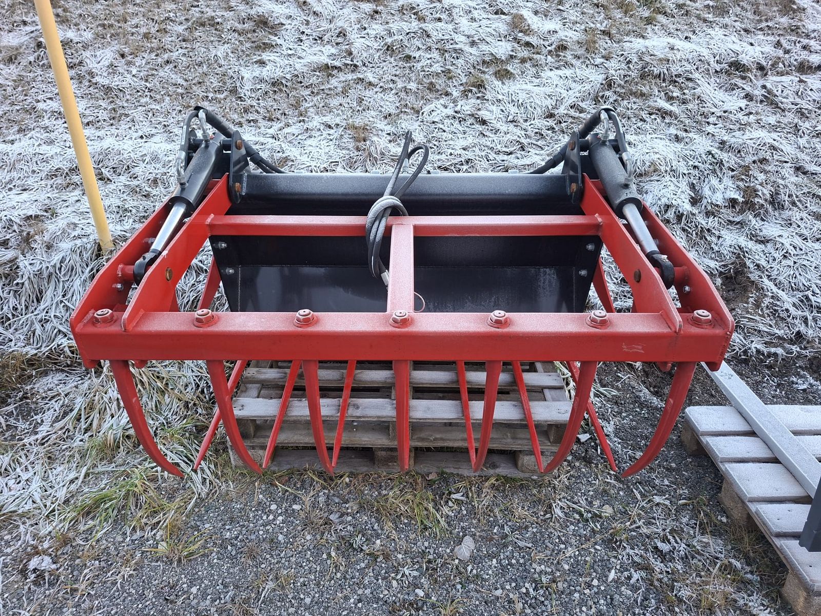 Dieser Agromet Krokodilgebiss ist mit einer Euroaufnahme ausgestattet und 1,40m breit. Anbau an jeden Frontlader mit Euroaufnahme. Das Gerät kann jederzeit bei uns in der Firma besichtigt werden.