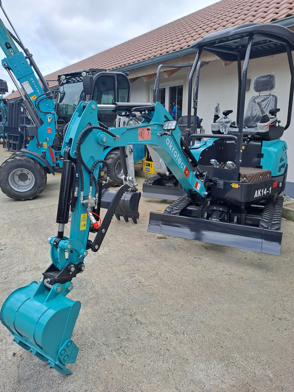 akrotect Minibagger AK14-1 mit Schutzdach Koop Motor Eigengewicht ca. 1200 kg. Baggerkettenbreite: 200mm Verstellfahrwerk, Fahrwerk verstellbar von 950mm bis 1250mm Foto einschließlich Anbauteile beispielhaft Zusätzliche optionale Anbaugeräte auf Anfrage: Greifer für Holz und Stein, Erdbohrer, Baggerschaufel 200/ 500 / 800mm, Humusschaufel 800mm starr und 900mm schwenkbar, Baggerdaumen in Greifer Ausführung, Schnellwechseleinrichtung mit automatischem Einklicksystem oder mechanischer Feststellschraube, Powertilt, MS01, Rüttelplatte unsere Standorte: 32479 Hille 71543 Heilbronn/ Wüstenrot 86975 Bernbeuren 97270 Würzburg/ Kleinrinderfeld 94527 Deggendorf/ Aholming 17291 Prenzlau 84405 Erding/ Dorfen 88410 Bad Wurzach 01665 Dresden/ Klipphausen 63619 Wächtersbach/ Bad Orb 04159 Leipzig-Lützschena VERTRIEBSPARTNER IM GROSSRAUM WÜRZBURG UND GANZ DEUTSCHLAND GESUCHT Datenblatt: -1 Zylinder Koop Motor/7kW, wassergekühlt - Eigengewicht ca. 1200kg - Hydraulikölkühlung - Fluter / Licht -360° drehbar -Fußsteuerung für den 2ten Hydraulikkreis, für ein effektives Arbeiten mit hydraulischen Anbaugeräten - Gültige Konformitätserklärung (CE-Kennzeichen innerhalb der EU) -Inklusive 2ter und 3ter Steuerkreis für hydraulische Anbaugeräte -Inklusive Verstellfahrwerk (100-130cm) -Inklusive Joysticksteuerung / Vorsteuerung -Inklusive Knickmatik -Inklusive Standardschaufel -Bedienungsanleitung - B-Lackierung für Baufahrzeuge, Lackdefizite können vorhanden sein Zahlung: per Vorabüberweisung Lieferbedingungen: Abholung im Standort nach Terminvereinbarung möglich Besichtigung erforderlich Wir suchen Vertriebspartner im Postleitzahlenbereich 14... 15... 16... Öffnungszeiten: Besichtigung/Verkauf/: Sa. / gem. terminlicher Absprache. Unsere Kontaktdaten entnehmen Sie bitte den rechtlichen Angaben, bzw. dem Impressum. Wir freuen uns über Ihr Interesse und beantworten gerne Ihre Fragen Wir weisen Sie darauf hin, dass Sie als Unternehmer bzw. Landwirt kaufen, ein Nachweis ist zu erbringen. Technische Daten unter Vorbehalt!