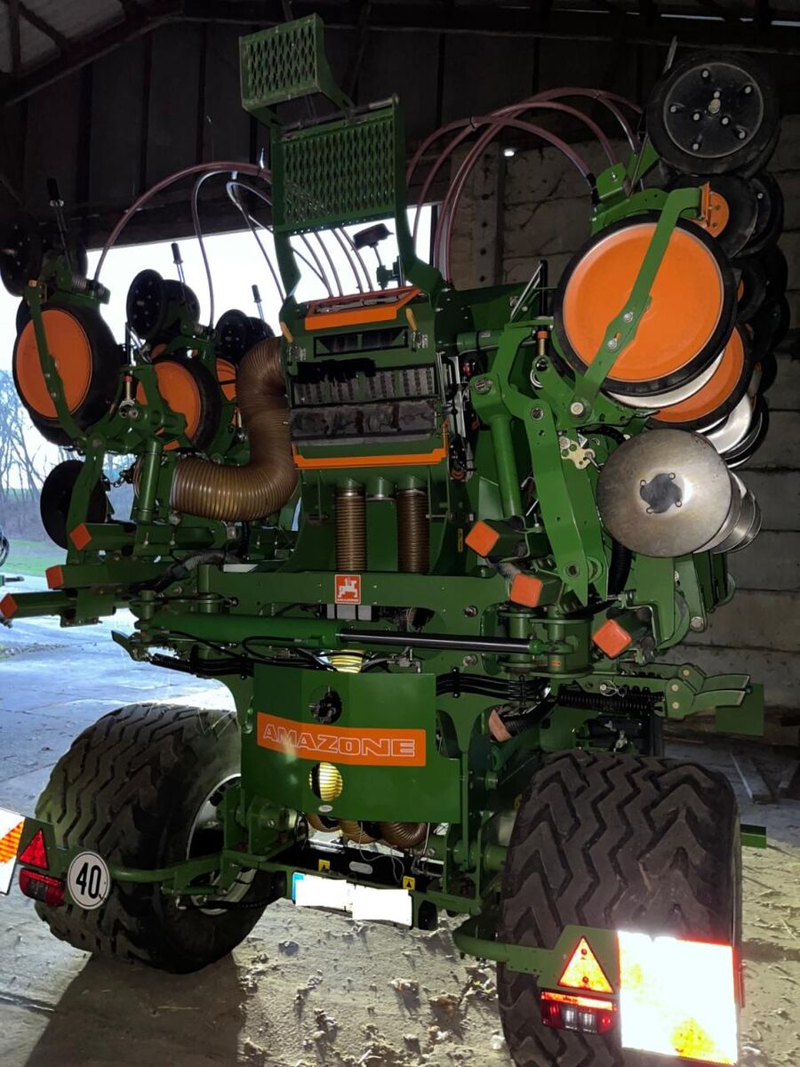 Reihen- / Körperabstand: 75 cm, Flächenleistung: 4700 ha, Beladestufe, Spurlockerer, Mulchsaat, Zweischeibenschare ________ Fahrwerk, hydr. klappbar, 8 Reihen, 75cm Reihenabstand, Befüllschnecke, UF Düngung, 40km/h, Spurlockerer,