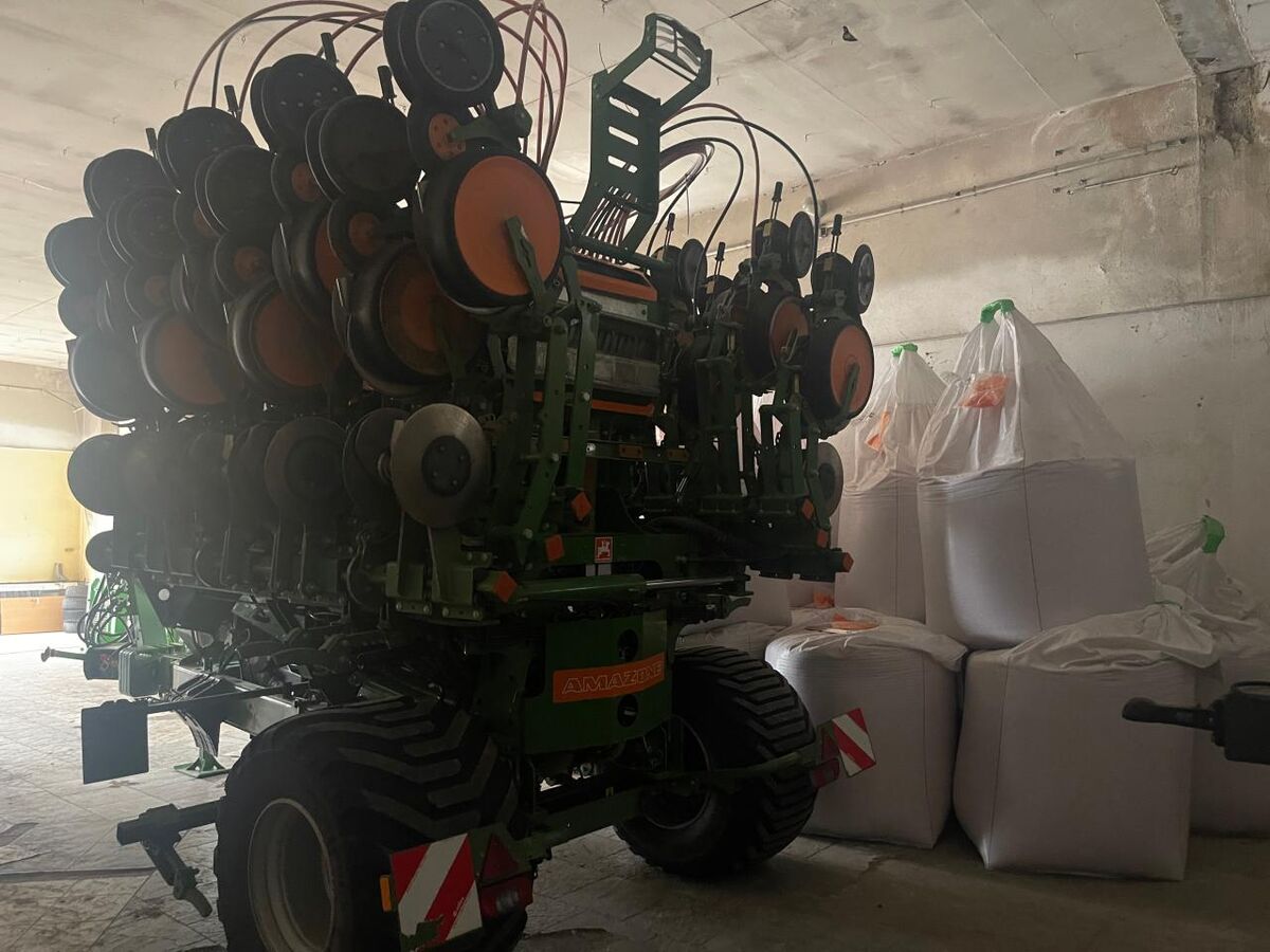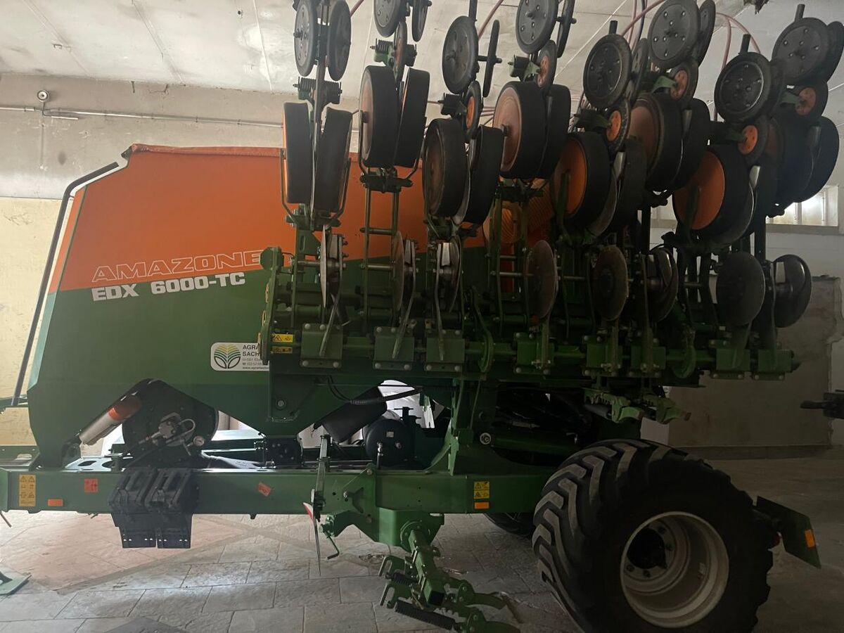 Reihen- / Körperabstand: 37.5cm cm, Beladestufe, Mulchsaat, Reihenanzahl (16-reihig), Zweischeibenschare ________ Fahrwerk, hydr. klappbar, 16 Reihen, Reihenabstand 37,5cm, Spurlockerer, Beladesteg, UL Anhängung, Beleuchtung, DL Bremse