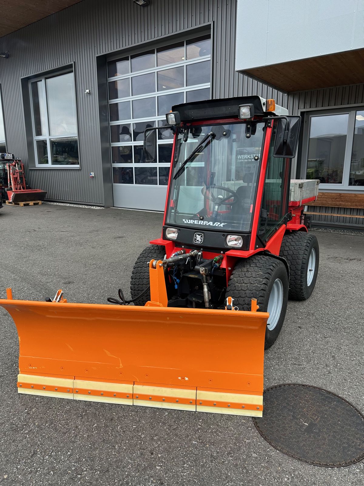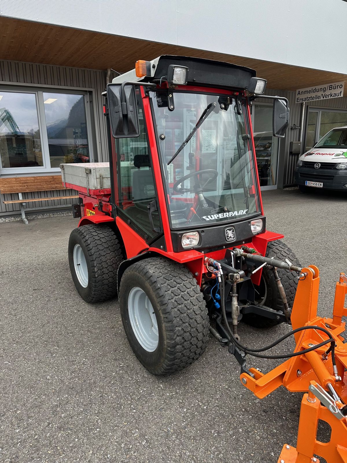 3-stufiger hydrostatischer Fahrantrieb, Kabine, Heizung, Radio, Zusatzscheinwerfer am Dach vorne und hinten,