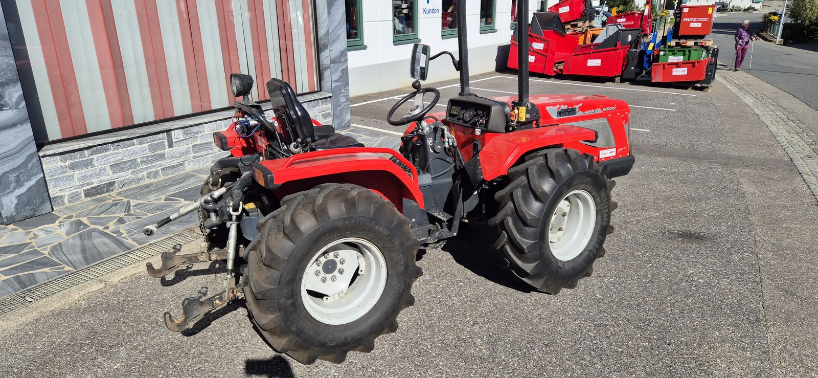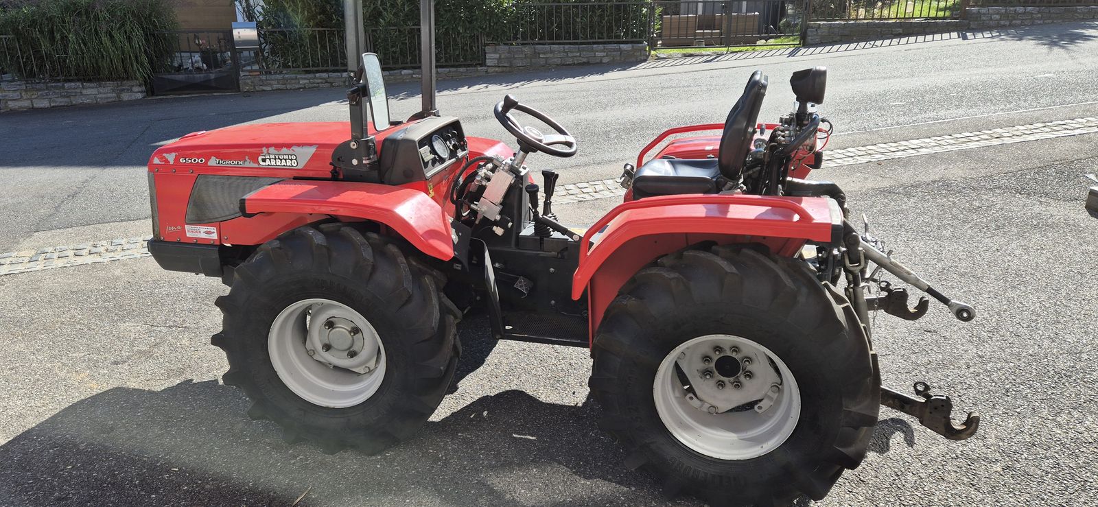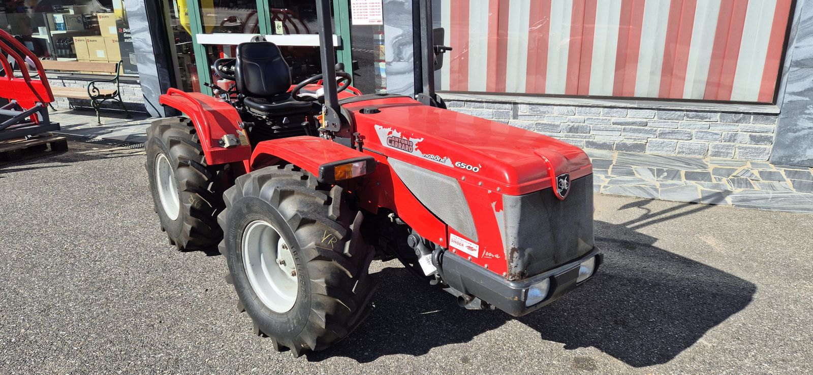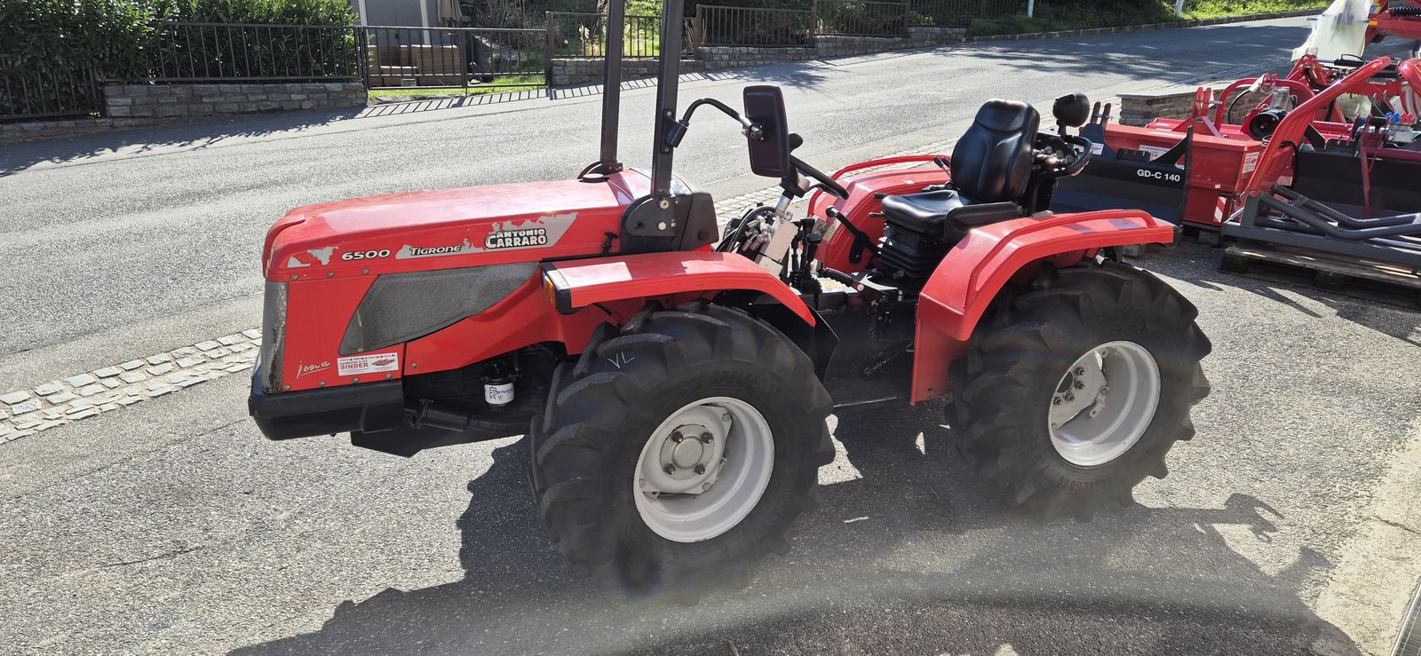 sehr schöner Antonio Carraro Traktor Tigrone 6500 Jona, Frontlenker mit Allrad, 4 Zylinder PERKINS Turbodiesel-Motor 57PS, 2.216cm³, hydraulische Lenkung, klappbarer Sicherheitsbügel,..