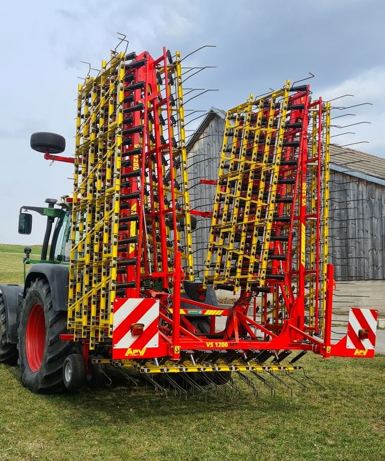 Sehr schöner Variostriegel - Präzisionsstriegel APV PS 1200 M1, Arbeitsbreite 12m, auch eingeklappt und teilweise eingeklappt fahrbar, hydr. Zinkendruckverstellung, Warntafeln und Beleuchtung, Stützräder, sofort verfügbar - Transport ev. möglich