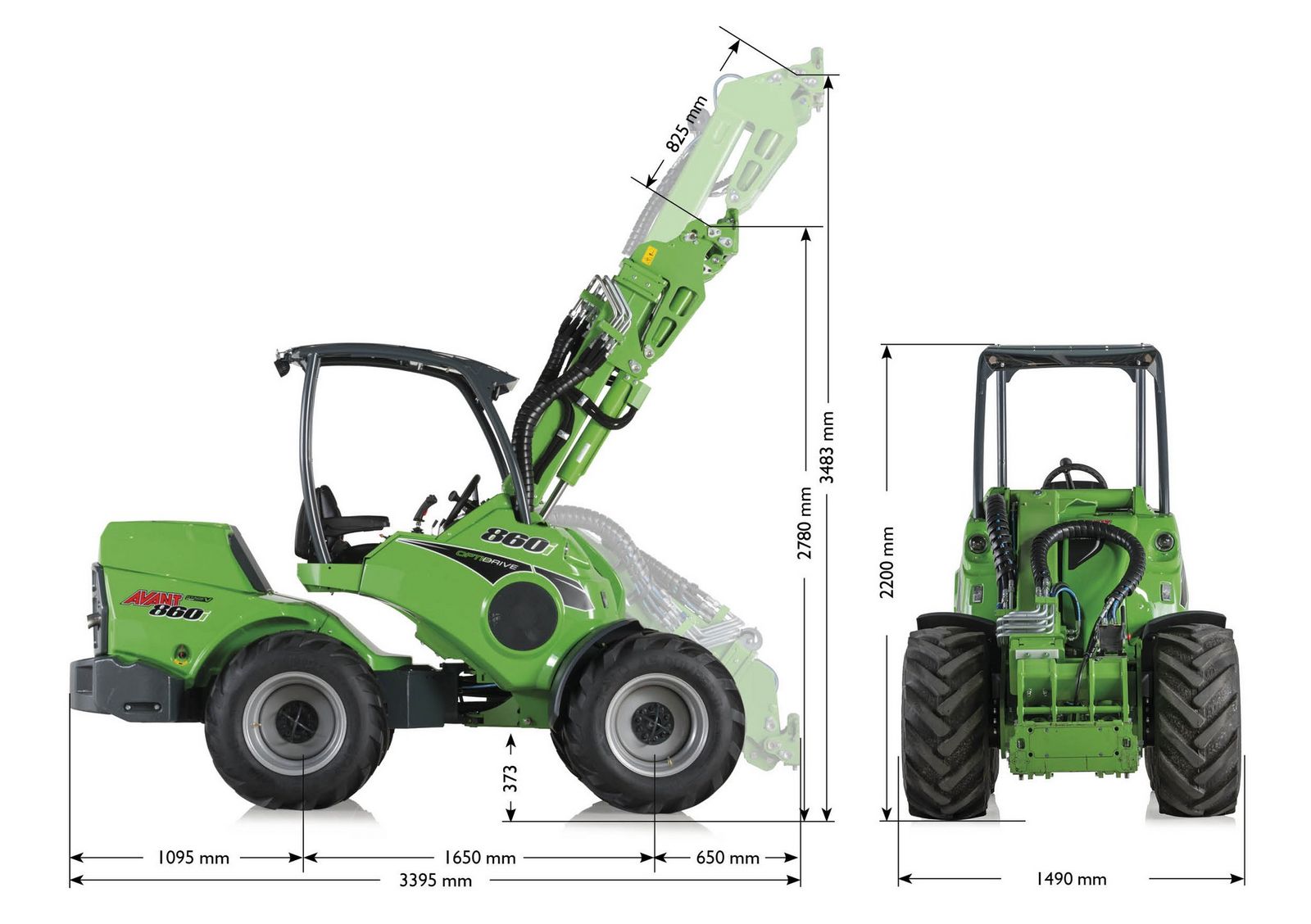 Der Avant 860i definiert die Grenzen eines Kompaktladers neu, indem er beispiellose Hubhöhe und Kapazität in der 800er Serie bietet. Diese Maschine ist darauf ausgelegt, effizient und ohne zusätzlichen Platzbedarf Lkw zu beladen – eine Fähigkeit, die den Avant 860i besonders für Arbeiten mit hohen Anforderungen an die Beweglichkeit und Leistung macht. Trotz seiner beeindruckenden Leistungsfähigkeit bleibt er kompakt und agil genug für Einsatzorte, die für größere Maschinen unzugänglich sind. Hauptmerkmale des Avant 860i: • Erhöhte Hubkraft: Mit einer Hubkraft von bis zu 1,9 Tonnen meistert der 860i auch anspruchsvollste Aufgaben wie das Handling von Steinpaletten mühelos. • Erweiterte Mobilität: Die Fähigkeit, einen Lkw vollständig von einer Seite aus zu beladen, erhöht die Effizienz und verringert die Notwendigkeit, die Maschine umständlich zu positionieren. • Komfortable Fahrerkabine: Die optionale GT-Kabine bietet modernen Komfort mit Klimaanlage, Vibrationsdämpfung und geringem Geräuschpegel, was einen angenehmen Arbeitsplatz den ganzen Tag über sichert. • Anpassbare Kabine: Nach Kundenwunsch ausstattbar mit Extras wie Klimaanlage, Bluetooth-Radio, und luftgefedertem Sitz für maximalen Fahrkomfort. Technische Daten: • Dimensionen: Länge 3395 mm, Breite 1490 mm, Höhe 2200 mm. • Gewicht: 2540 kg. • Standardbereifung: 380/55-17 AS. • Antrieb: Hydrostatisch mit Avant Optidrive™, Fahrgeschwindigkeit bis zu 30 km/h. • Zusatzhydraulik: 80 l/min bei 225 bar. • Maximale Hubhöhe: 3500 mm, mit einer maximalen Hubkraft von 1900 kg und einer Ausbrechkraft von 2200 kg bei 500 mm. Angetrieben von einem leistungsstarken Kohler KDI 1903TCR Stage V Motor mit 42 kW (57 PS) und einem maximalen Drehmoment von 220 Nm bei 1500 U/min, setzt der Avant 860i neue Standards in Sachen Leistung und Effizienz in der Kompaktladerklasse. Egal, ob für den Einsatz auf dem Bauernhof, bei kommunalen Arbeiten oder auf Baustellen – der Avant 860i ist die ideale Wahl für alle, die eine leistungsstarke, vielseitige und doch kompakte Maschine suchen. Avant Hoflader, Radlader, Multifunktionslader, Geräteträger