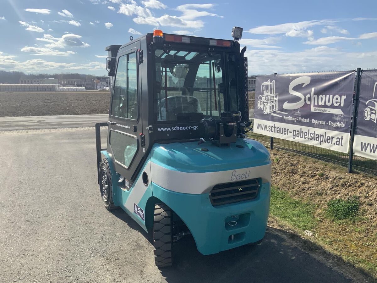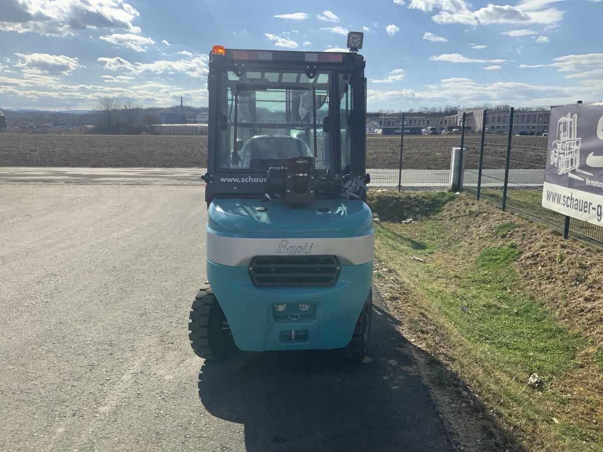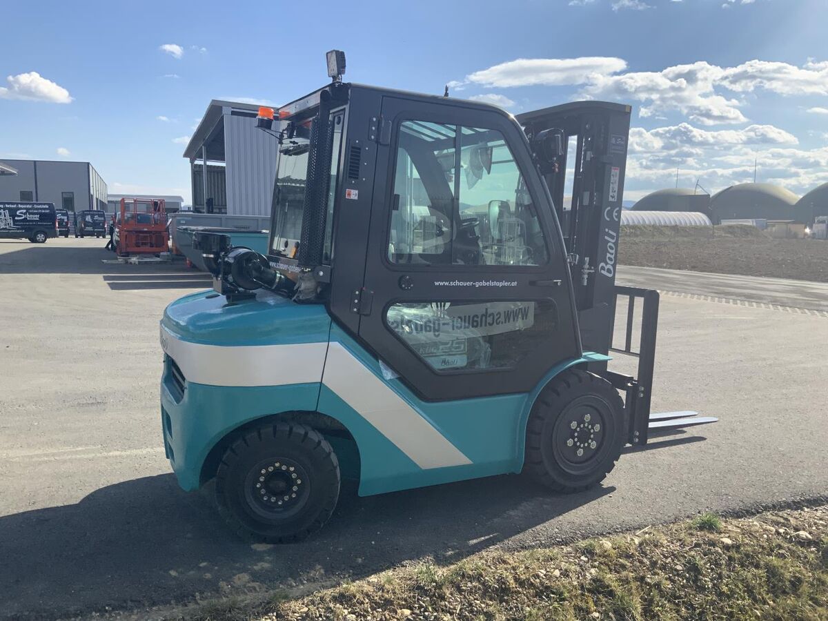 Bauart: Frontstapler / Dieselstapler, Tragkraft: 2500kg, Hubhöhe: 4700mm, Gabellänge: 1220mm, Bereifung vorne: Superelastik , Bereifung hinten: Superelastik , Anbaugeräte: Lastschutzgitter, Seitenschieber, Sonderausstattung: Arbeitsscheinwerfer hinten, Arbeitsscheinwerfer vorn, Heizung, Vollkabine, Sonderausstattungbeschreibung: Elektrischer Fahrtrichtungsschalter Signalhorn bei Rückwärtsfahrt Haltegriff mit Hupe Seitlich montierte Hydraulikbedienhebel Dreifach Freisicht Hubgerüst VFHM4700 Hydrauliksteuerung: 3+4 mit Schlauchleitung 3-fach Komfortsitz Interner Panoramaspiegel und Seitenspiegel außen Warnleuchte Vertikaler Auspuff Luftvorfilter