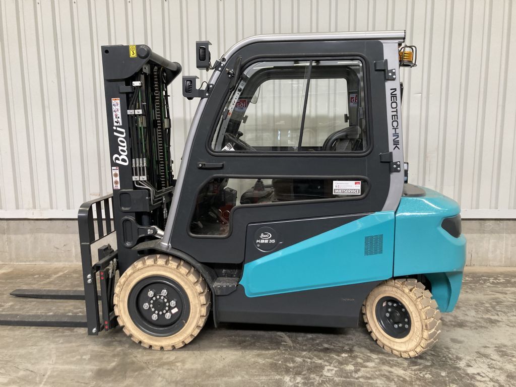 Bauart: Frontstapler / Elektro 4 Rad-Stapler, Tragkraft: 3500kg, Hubhöhe: 4650mm, Bauhöhe: 2212mm, Freihub: 1453mm, Gabellänge: 1200mm, Batterie: 80V 412Ah Lithium-Ionen 80V , Bereifung vorne: Superelastik Einfach , Bereifung hinten: Superelastik Einfach , Anbaugeräte: Lastschutzgitter, Seitenschieber, Sonderausstattung: 3. Ventil, 4. Ventil, Arbeitsscheinwerfer hinten, Arbeitsscheinwerfer vorn, Heizung, Vollkabine, Außenspiegel, Einpedal, Sonderausstattungbeschreibung: Blitzleuchte, USB Ladeanschluss, Mehrhebelbedienung- Hydraulik, Fahrzeugbeleuchtung Beschreibung: Zustand Neuwertig inkl. 24 Monaten Garantie