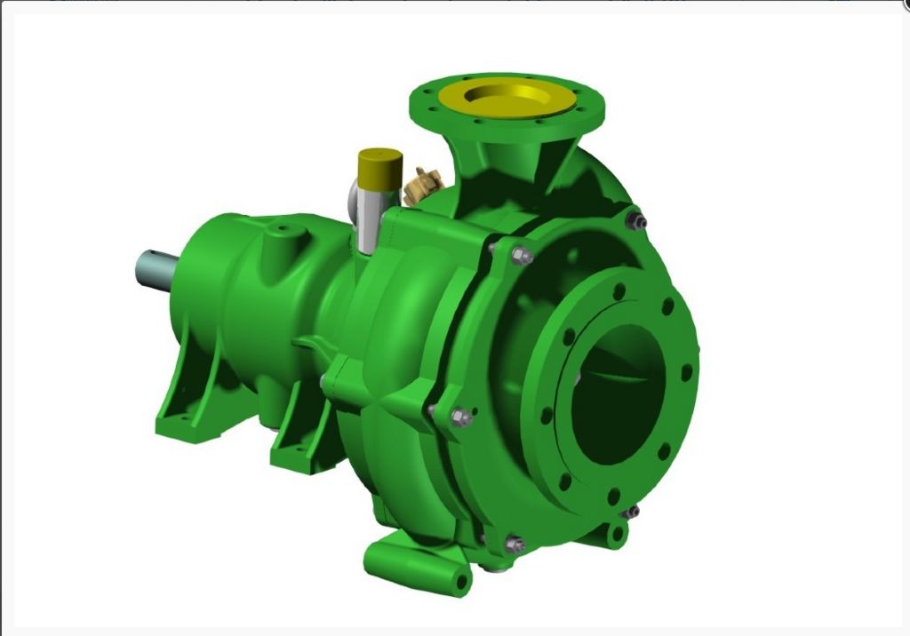 *Förderstrom (m³/h): 60-300 *Förderhöhe (m): 140-102 *max. Leistung (kW): 130 *Drehzahl (min-1): 2600 *Lagerstuhlpumpe mit nachstellbarem Schneidwerk *Spiralgehäuse aus GG 25 *Saugflansch mit drallreduzierender Funktion *Dickstofflaufrad mit Rückenschaufeln - 2600 min-1 *Dickstofflaufrad aus Sphäroguss mit gehärteten Schneidkanten *Schneidflansch aus Chromstahlguss *Lagerstuhl aus Grauguß *Pumpenwelle aus Vergütungsstahl *Gleitringdichtung (Siliziumkarbid) mit Ölvorlage *Spülanschluß mit Geka-Kupplung *Sauganschluss DN 150 *Druckanschluss DN 100 *freies Wellenende Ø 42 mm für Direkt- oder Keilriemenantrieb