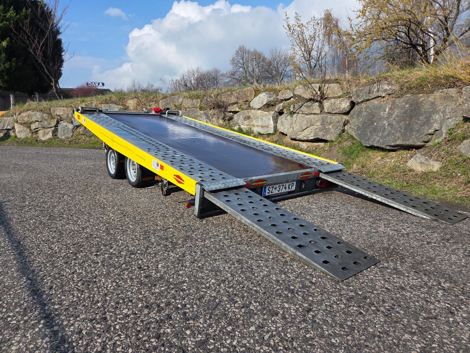 Autotransporter AH 4320/35 Erstzulassung: 13.05.2025 (ehemaliger Mietanhänger) Gesamtmaße: 6200x2150x680mm Plateaumaße: 4300x2080mm Zulässiges Gesamtgewicht: 3500kg Leergewicht: 1021kg Zweiachs-Modell Bereifung: 195/50 R 13 C & Felge: 5,5 J x 13 ET 30 Stützrad automatik Auffahrschienen ausziehbar Seilwinde mechanisch (900 kg) mit Umlenkrolle Seilwindenbock 2 Stück versenkte Zurrbügel in Leuchtenträger eingelassen 2 Stück Zurrbügel in Laufschiene vorne montiert Kippvorrichtung hydraulisch +2 Sicherungsböcke, verstellbar +Ladeflächen geschlossen (Holz) +Fahrzeugpapiere