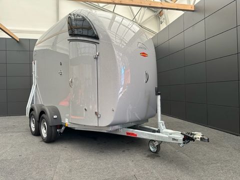 Böckmann Pferdeanhänger Master WCF in Serie - Aufbaufarbe silber-metallic - Polyesterhaube silber-metallic - Einzelradkotflügel, Kunststoff - Planenlift mit integriertem Netz - mit Einstiegstür - Gummibelag auf Hinterklappe (integrierte Trittleisten und Seitenstopp) - 2 Seitenstreben - 4 Hinterklappenscharniere - Kennzeichenhalter mit 2 Auftritten - Heckstrebe geschlossen - Rangiergriff - Hebevorrichtung Gasdruckstoßdämpfer - Gummiboden verklebt und versiegelt - Vollaluminium-Boden - Aufstellfenster in Polyesterhaube - 2 Futtertröge - Multi Safe System (Sicherheitsboxenstangen-System - Boxenstangen-Zusatzpolsterung - Seitenpolsterung - Trittschutz seitlich, Kunststoff (schwarz) - LED-Deckenleuchte im Pferderaum - Sattelhalter ausziehbar - Besen mit Teleskopstiel - Spiegel an der Sattelkammertür, Türnetz - Polyester-Sattelkammer mit Futtertrögen - Kunststoffschaufel mit Stiel - Stützrad automatik - Längsträgerfahrgestell mit V-Deichsel - tiefergelegtes WCF-Fahrwerk - Innenmaße LxBxH ca. 3560x1650x2350mm - zul. Gesamtgewicht 2400kg - Eigengewicht 1084kg - Nutzlast 1316kg Das Verkaufsteam der Firma Mühlbacher Maschinen zeigt Ihnen den Anhänger gerne und bittet um Terminabsprache für eine Besichtigung bei uns im Betrieb. Besuchen Sie auch unsere 1.500m² große Ausstellungshalle!