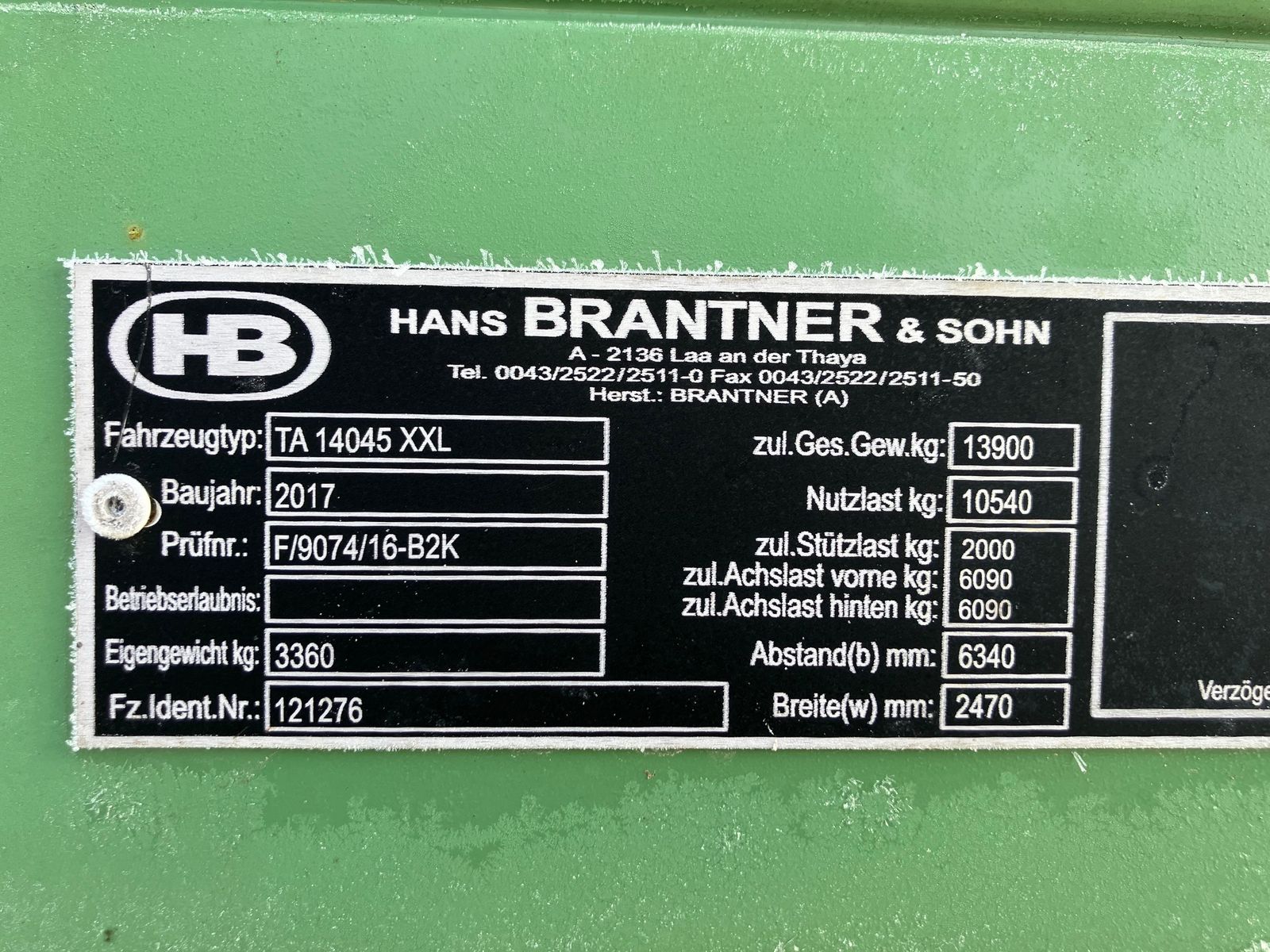 Brantner TA 14045 XXL DL Bremse Wände 600-600 mit Bordwandversteifung Unten Sattelstützwinde 25Km/h Kornauslaufgosse Reifen 500/50R17 95% Bordwandhebefedern Abklappbare Wände 1 HubZylinder