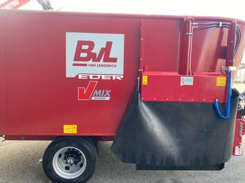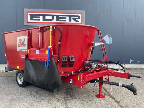 Bereifung (v): 215/75 R17,5, Geschwindigkeit: 8 km/h ________ BVL V- Mix Plus 15N - 2S Fremdbefüller Bodenplatte aus 20mm S355 Behälterwand aus 8mm S355 HDF-Ausführung T-Deichsel Obenanhängung Zugöse 40mm Weitwinkelgelenkwelle Beleuchtung mit Anfahrschutz Austrag seitlich Fest verschweißter Überlaufring Einzelachse Hydraulische Hilfsbremse für Hoffahrt 8 km/h Bereifung Zwilling 215/75 R17,5 Additionswiegeeinrichtung HL 25 Podestleiter Basic Mischschnecke inkl. HB 400 Aufnahmeschiene und verstellbaren Messern Induktionsgehärtete Messer EL Bedienung mit 4. Funktionen