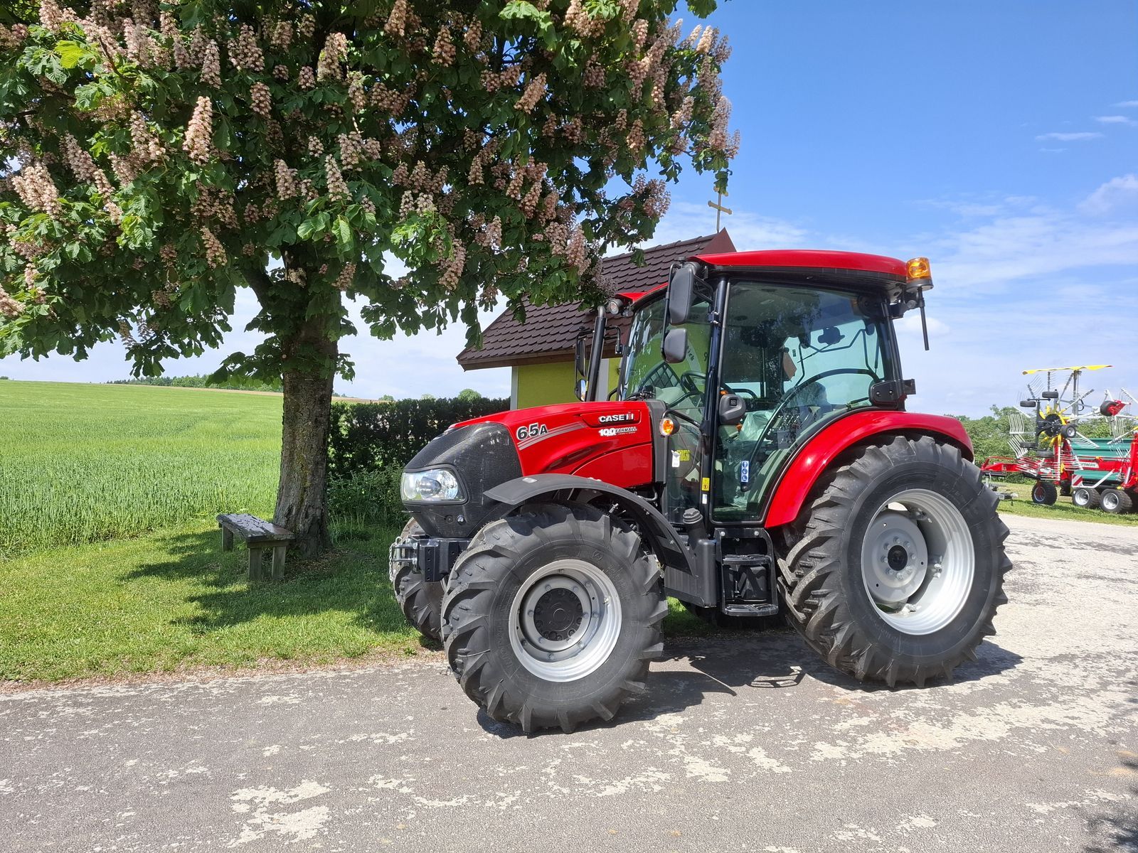 Ausstattung: - ManualDrive 12x12 Getriebe, 40 km/h - 20x20 Kriechganggetriebe - Zapfwelle 540/540E - Vorderachsbock mit Vorbereitung für Frontzapfwelle (Batterieposition erhöht) - Allradachse mit Selbstsperrdifferenzial, 1 Lenkzylinder für 40 km/h - Mechanische Differnzialsperre & elektro-hydraulische Allradschaltung für Syncro Shuttle 3x mechan. Hecksteuergeräte (1. einfach/doppelwirkend, 2. doppelwirkend mit Endabschaltung & - Schwimmstellung, 3. doppelwirkend mit Endabschaltung, Schwimmstellung & Mengenregulierung) - Schnellkupplungen (DELUXE) - Außenbedienung für Heckhubwerk - Mechanische Hubwerksregelung (MHR) Lift-O-Matic, mit externem Hubzylinder - Unterlenkerschnellfanghaken - Anhängebock mit höhenverstellbarem, drehbaren Zugmaul mit 32mm Zugbolzen (manuell) - Ackerschiene - Fahrersitz (Stoff), luftgefedert, mit Armlehne & Gurt - Ausbildungssitz mit Gurt (Beifahrersitz ohne Genehmigung für öffentlichen Straßenverkehr) - Front- & Heckscheibenwischer - Bluetooth-Radio - Kabine mit fixer Frontscheibe & Freisichtdachfenster - Kabinenheizung & Lüftung mit Klimaanlage - 2x Arbeitsscheinwerfer am Dach vorne & 2x Arbeitsscheinwerfer am Dach hinten - Rundumleuchte - 2x Teleskopaußenspiegel mit Weitwinkelsegment - Vorderräder: 14.9LR20 Verstellfelgen, KLEBER - Hinterräder: 420/85R30 (16.9R30) Verstellfelgen, KLEBER - Vorderradkotflügel 400 mm mitschwenkend