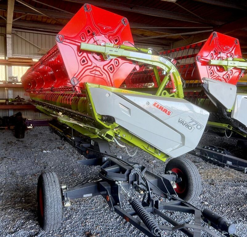 CLAAS Vario 770 V NEU (Int-Nr.: 15343) Schneckenschneidwerk starr mit hydr. Tischverlängerung, Arbeitsbreite 7,70 m, Körnerspritzblech an Schneidwerksrückwand, Multifinger Einzugsschnecke (Q660 mm) höhenverstellbar, Ährenheber 24 Stück, Haspelantrieb hydraulisch, Haspel einseitig und synchron laufend, Haspel mit autom. Zugkraftregelung, Messerbalken einseitig angetrieben inkl. Ersatzmesser, Vorsatzreversierung über Armlehne, Park- und Arbeitsposition autom. für Haspel und Schneidwerkstisch, Gelenkwelle, AutoContour Schneidwerksführung 4 Taster, Zusatzmodul, Halmteiler kurz, einstell und klappbar, Gelenkwelle, 2-Achs Transportwagen NEU Lange Deichsel 25 km/H Listenpreis SW 72.650,00 EUR Listenpreis Wagen 12.490,00 EURGesamtlistenpreis: 85.140,00 EUR zzgl. MwSt. Option: Rapstrenner rechts mit Rapsbox 4.900,00 EUR zzgl. MwSt. Rapsmesser links 3.900,00 EUR zzgl. MwSt.Mehrpreis 40 km/H 950,00 EUR zzgl. MwSt.1-Achstransportwagen Mehrpreis 950,00 EUR zzgl. MwSt.