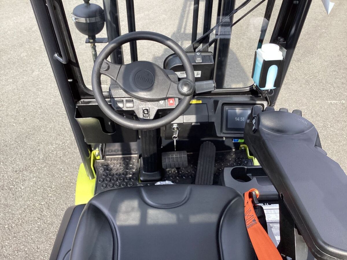 Bauart: Frontstapler / Elektro 3 Rad-Stapler, Tragkraft: 1600kg, Hubhöhe: 4780mm, Bauhöhe: 2105mm, Freihub: 1497mm, Gabellänge: 1220mm, Batterie: Eternity Bj. 2025 48V 500Ah Zustand: Neu, Bereifung vorne: Superelastik Einfach 80 - 100% , Bereifung hinten: Superelastik Einfach 80 - 100% , Anbaugeräte: Lastschutzgitter, Seitenschieber, Zinkenverstellgerät, Anbaugerätebeschreibung: Angehängter Zinkenversteller (Schiebertyp) Breite: 940 mm (37) Lastschutzgitter 940 mm (37) x 1220 mm (48) (Breite x Höhe) Sonderausstattung: 3. Ventil, 4. Ventil, Arbeitsscheinwerfer hinten, Arbeitsscheinwerfer vorn, Dachabdeckung, Frontscheibe, CE Zertifikat, Safety Light, Safety Pilot, Sonderausstattungbeschreibung: Hydraulikbedienung und Zusatzventil: 4