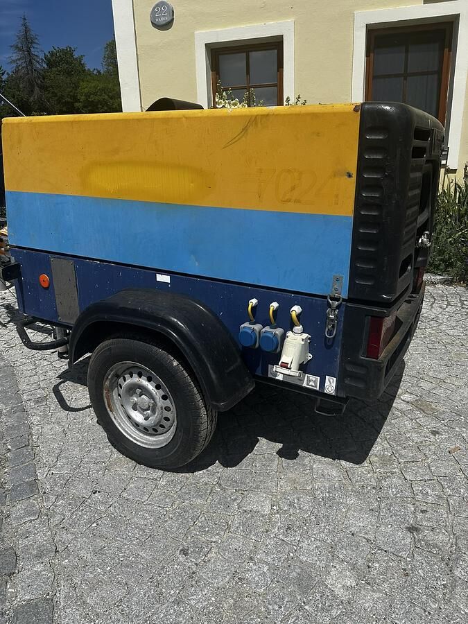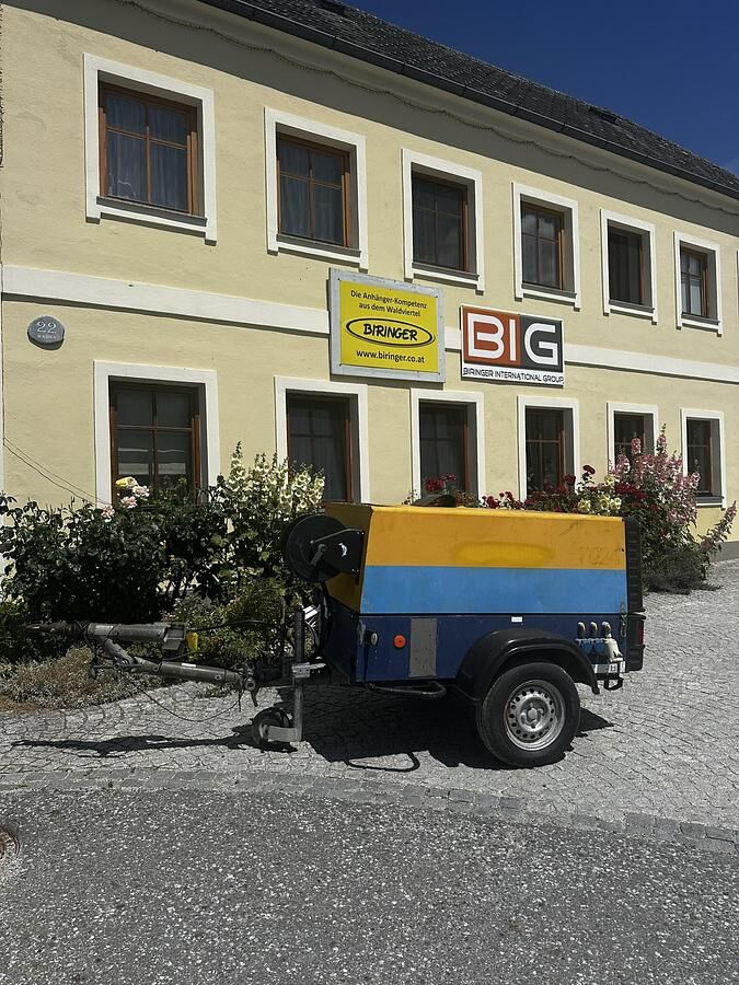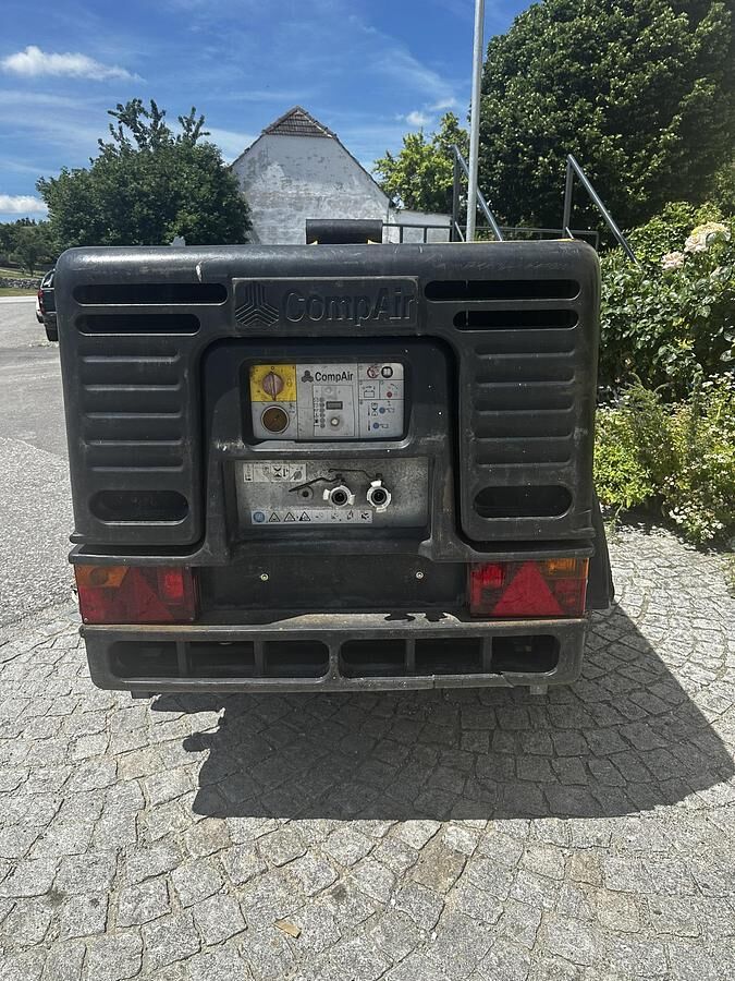 2008 CompAir C38G DLT 0407 Kompressor 7 - Anhänger Technische Daten: Eigengewicht: 892 KG Gesamtgewicht: 1000 KG Nutzlast: 108 KG Stützlast: 75/- KG Höchstgeschwindigkeit: 100 km/h Volumenstrom: 3,80cm³/min Betriebsdruck: max. 7 bar Motorleistung: 35,8 kW