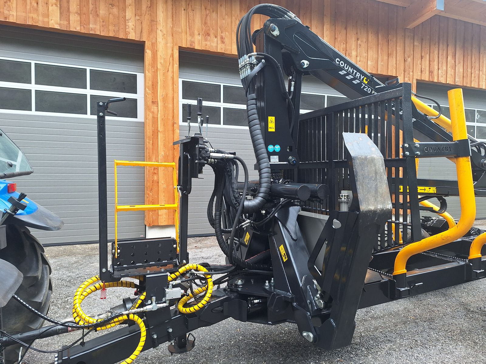 COUNTRY C720/T110D - 4 WD Reibrollenantrieb Forstanhänger mit Kran - Flanschkran mit 7,2m Reichweite - Hubkraft bei 3,5 m 1356 kg - Zange 0,26 Pro - Öffnungsweite 1380 mm - Zusätzliche Funktion - Rotator CR 400, 4to - Pendelbremse 2fach - Klappstützfüße - ON-OFF Steuerung 4/8 XY - 11 to Nutzlast, Doppelrahmenanhänger - hydraulische Bremse auf beide Achse Bzw alle 4 Räder - Lastregelventil Leer / Halb / und Volllast - Knickdeichsel mit 2 Zylinder - 4 Rungenpaare - 4 WD Reibrollenantrieb - Große Bereifung - Zugöse Scharmüller - Beleuchtung LED - Stehpodest - Kurbelstützfuß WIRD VERKAUF DA ER ZU WENIG GENUTZT WIRD ! War ca. 30 Betriebsstunden im Einsatz Standort in 5621 St.Veit im Pongau