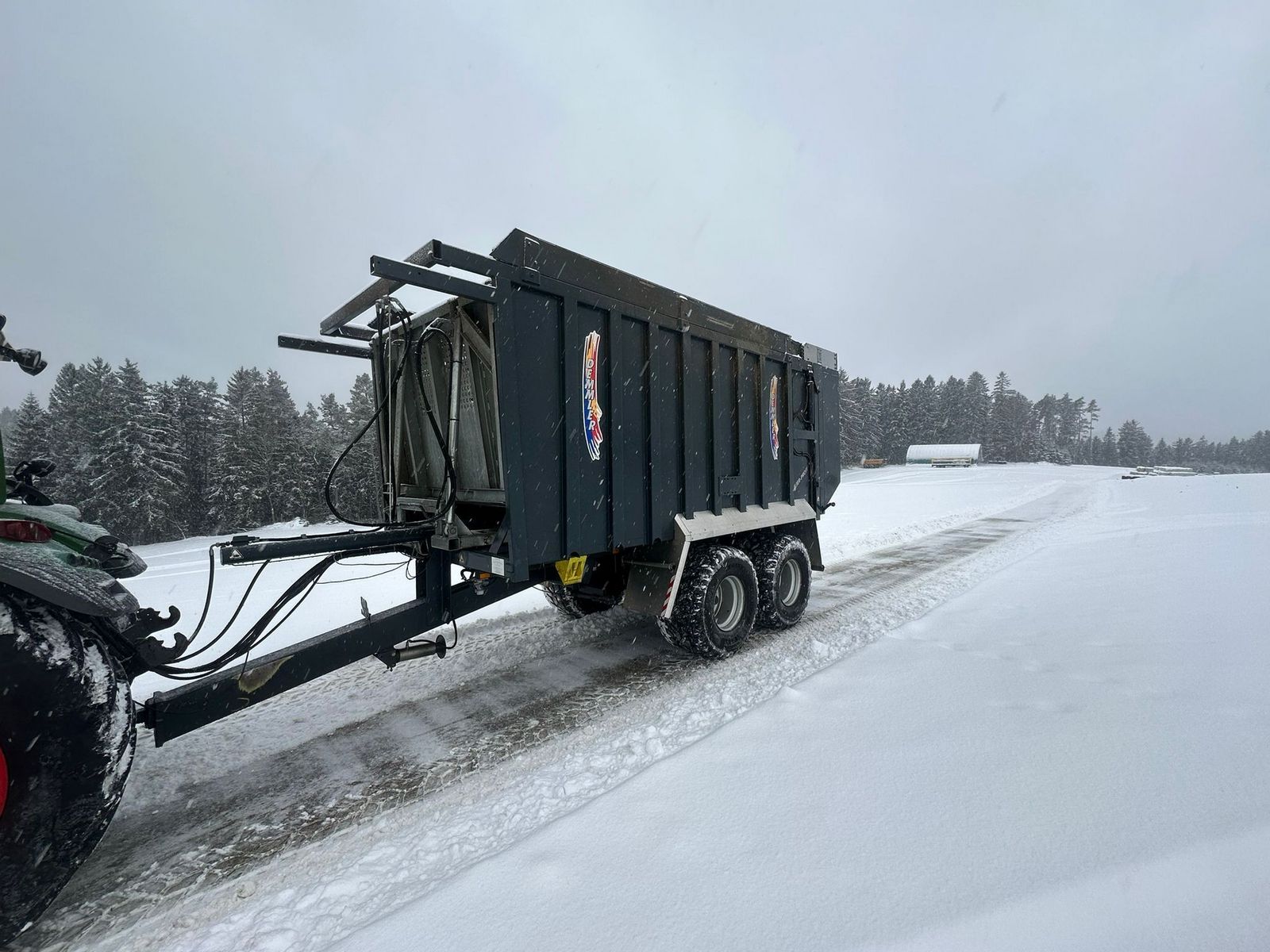 zu Verkauf steht ein Demmler Abschiebewagen TSM 1850LL, mit leichter Beschädigung rechts, Bereifung 650/50-22.5, 20to Gesamtgewicht, K 80 Untenanhängung