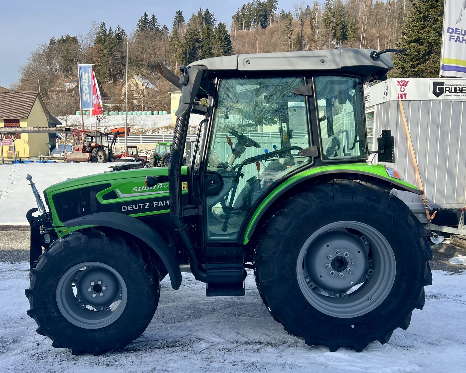 fabriksneuer Traktor DEUTZ FAHR 5080 D Keyline B - GS mit Powershuttle hydraulischer Bremsanlage und Sauter Fronthydraulik * 30/15 Ecospeed Getriebe * Powershuttle * Komfortkabine mit Luftsitz * Freisichtdach * Klimaanlage * Auspuff oben am A-Pfosten * Zusatzhubzylinder * 3 x Steuergerät mit 4 Remoteanschlüssen * 540/540E/1000 - nasse Zapfwelle * Hydraulikheckbetätigung * lenkbare Kotflügel vorne * Ackerschiene * Sauter Fronthydraulik mit Multikuppler, Einhebelsteuergerät und Schwingungsdämpfung Gerne können Sie den Traktor bei uns am Gelände besichtigen und probefahren. Eintausch Ihres Altgeräts und Finanzierung möglich. Zustellung mit Spedition jederzeit möglich. Alle Angaben ohne Gewähr.