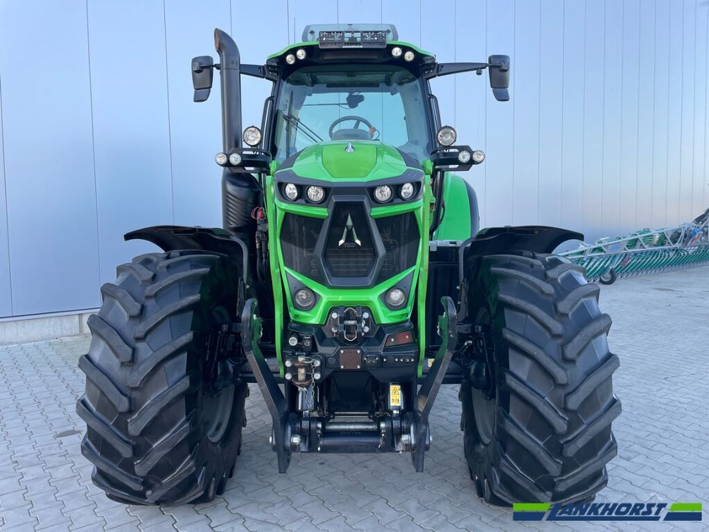 Geschwindigkeit: 40, Erstzulassung: 08.03.2019 ________ Deutz-Fahr Schlepper Typ: 6165 Powershift Baujahr: 2019 Betriebsstunden: 3430h 7CA702 Variante A GS017 Zweileitungs Druckluftbremsanlage M.R. Version EU/DE (ohne hydraul. Anhängerbremse in CH) NC054 Fronttriebachse gefedert mit Lamellensperrdifferenzial 100% und ASM/SBA VF014 Rundumleuchte H1 VG004 1 Arbeitsscheinwerfer hinten auf Kotflügel rechts H9 VI004 2 Arbeitsscheinwerfer auf Kotflügel hinten H9 VJ020 7 polige Signaldose ISO 11786 für Anbaugeräte (z.B. für Feldspritze) WL001 Bedienpanell für Arbeisscheinwerfer (WOLP) RF917 Bereifung Trelleborg: 540/65R28 vorne, 650/65R38 hinten SS011 Kabine, mechanisch gefedert SI006 Frontscheibe geschlossen Seitenscheiben links und rechts ausstellbar AW004 Dachluke Glas mit UV-Beschichtung AE500 Sitz Max-Comfort Dynamic XL Dynamische Luftfederung, elektr. verstellbare Lendenwirbelstütze breiter Rahmen GT019 Hubzylinder D.100 mm 9700KG FC001 Mechanischer Oberlenker KAT II für FKH ohne automatischen Fanghaken FB001 Elektr. Steuergerät für Frontkraftheber FA173 Frontkraftheber mit doppeltwirkenden Zylindern (Hubkraft 4110kg)inclusiver 2 Wiederholscheinwerfern über Positionsleuchten, ohne Dreieck. GX001 Power Beyond Kupplung (bei LS-System) GP283 4 Zusatzsteuergeräte Betätigung Mechanisch GN030 Komfortpaket für Frontkraftheber: Fernbetätigung FKH, 7-polige Steckdose 1 Steuergerät elektr. mit 2 doppelt wirkenden Anschlüsse vorn. GB426 Load-Sensing Verstellpumpe mit 120 l/min Förderleistung